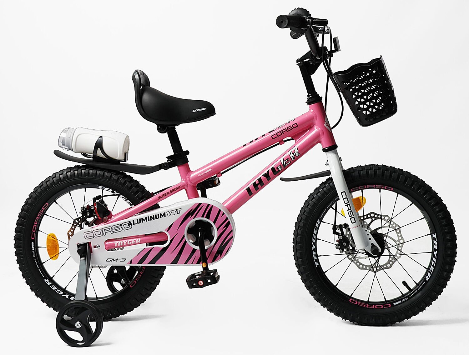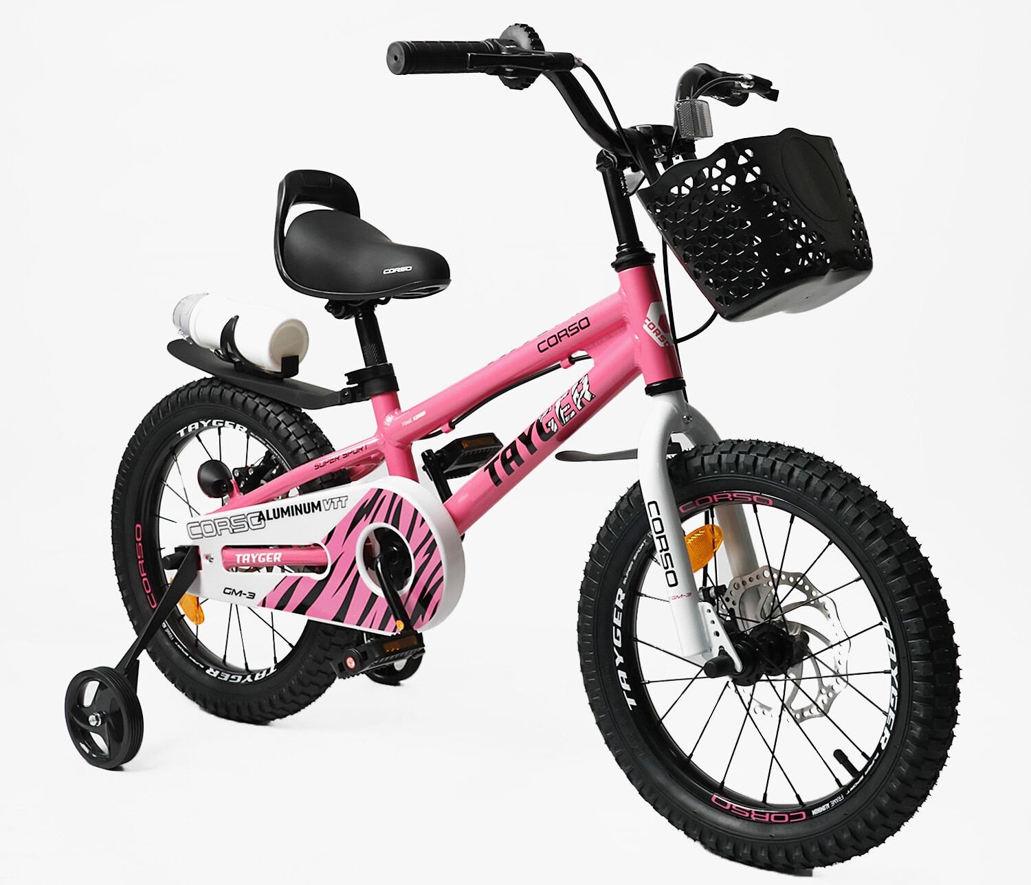 Дитячий велосипед 16 AL Corso «TAYGER» TG-21476 алюмінієва рама, дискові гальма, рожевий