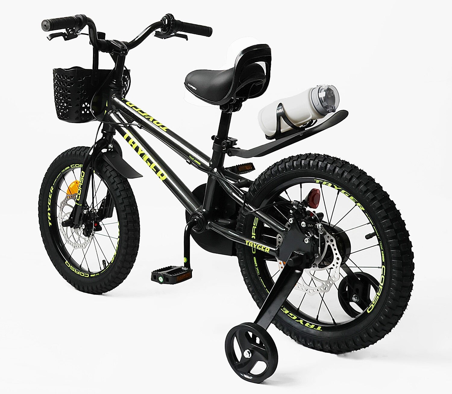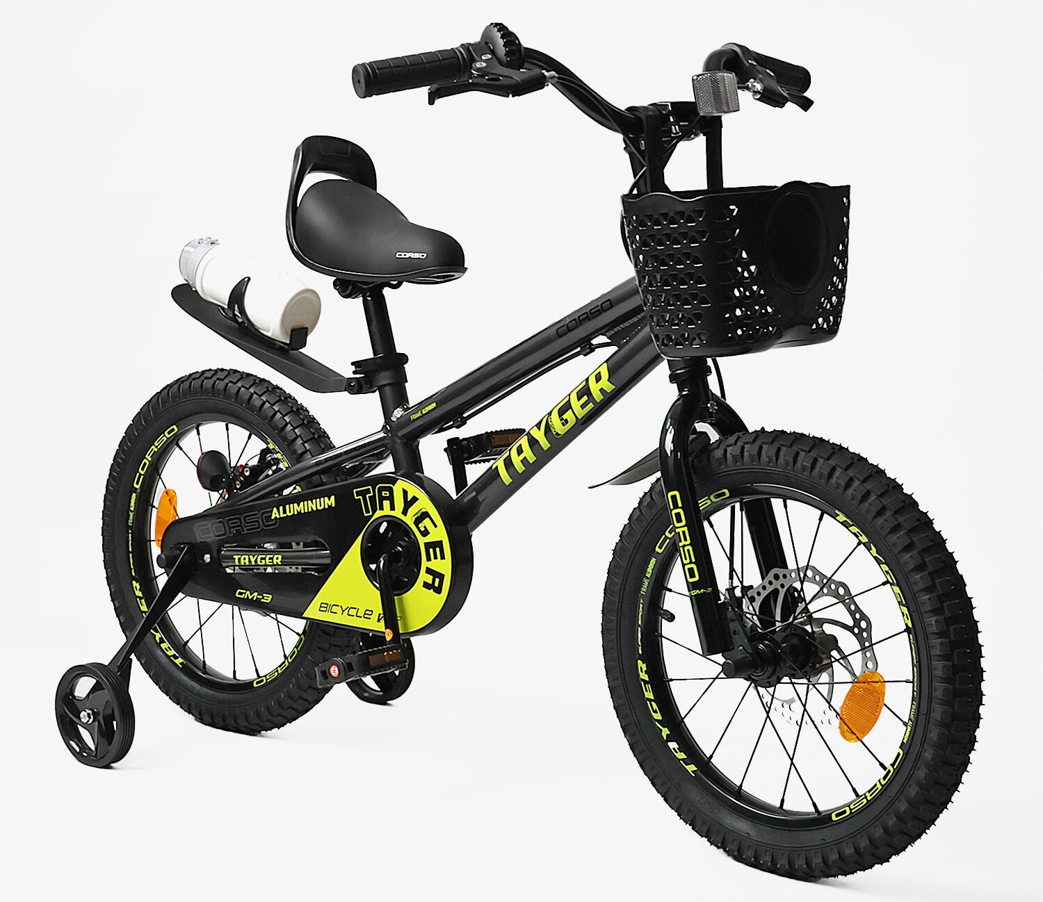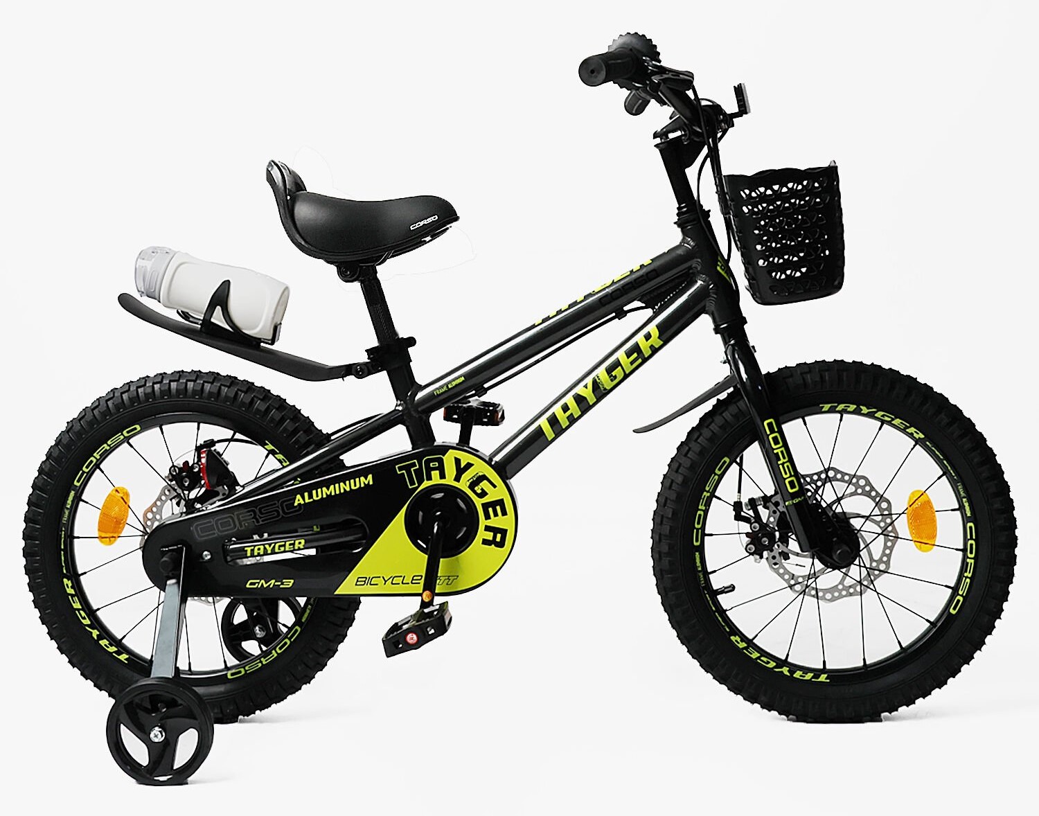 Дитячий велосипед 16 AL Corso «TAYGER» TG-30211 алюмінієва рама, дискові гальма, чорно-жовтий