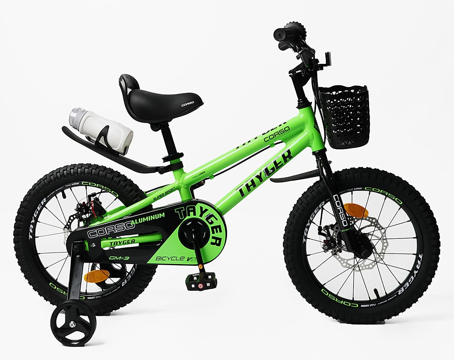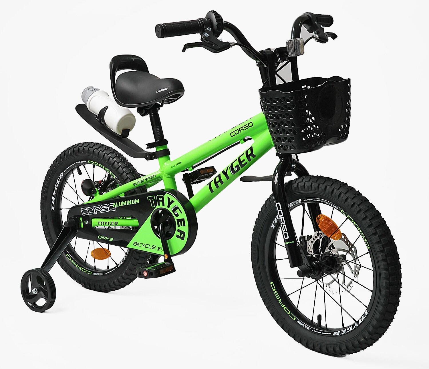 Дитячий велосипед 16 AL Corso «TAYGER» TG-70411 алюмінієва рама, дискові гальма, салатовий