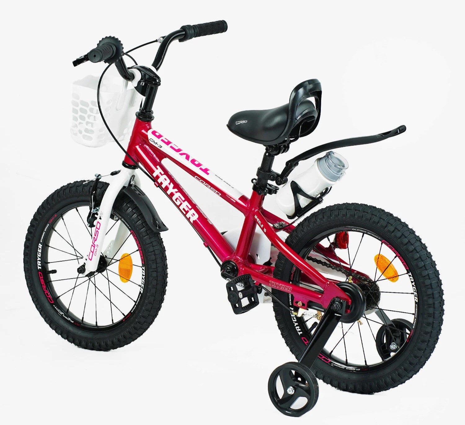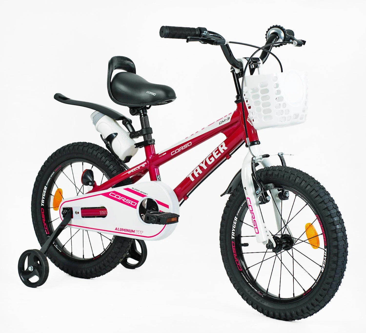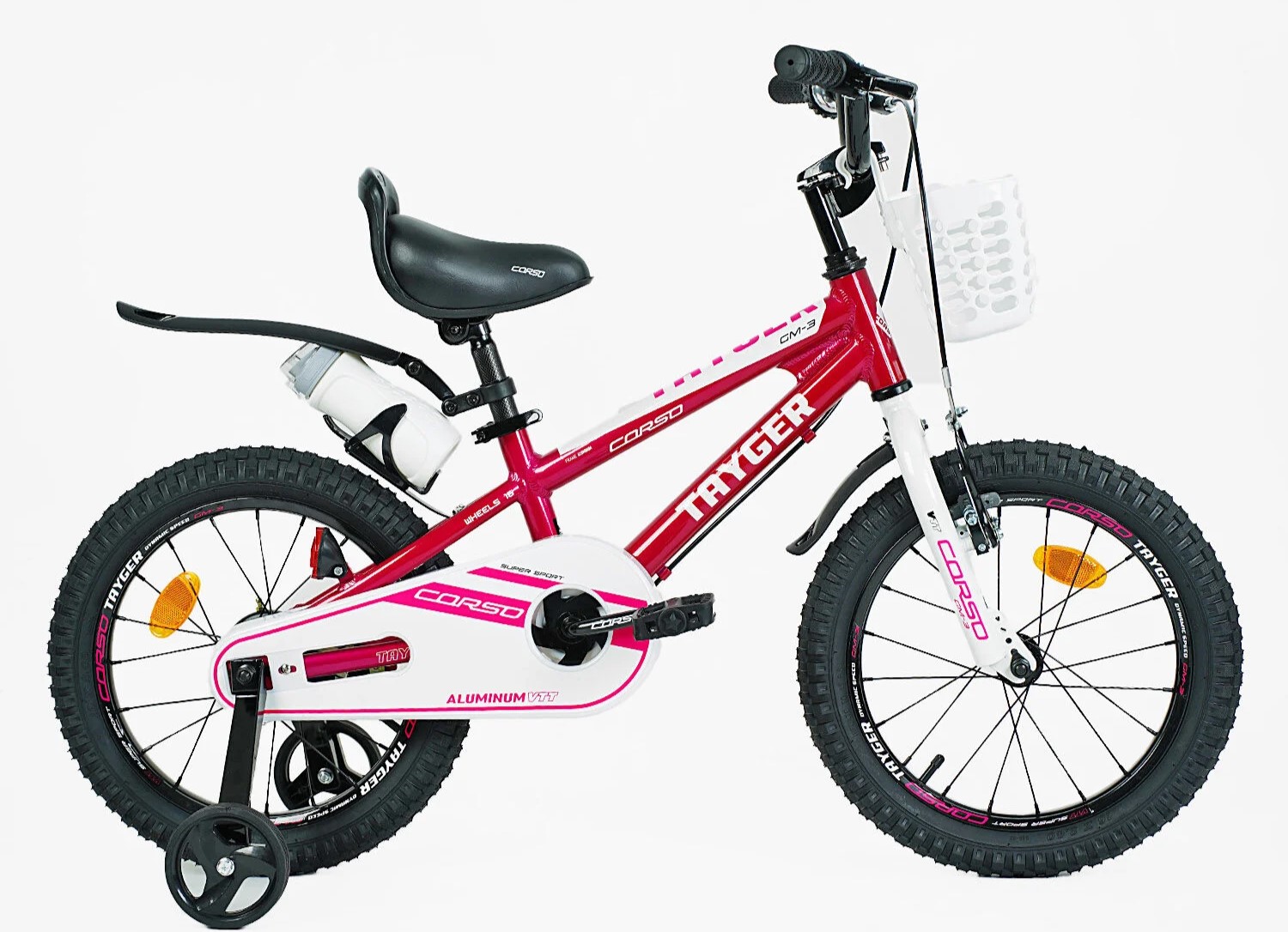 Дитячий велосипед 18 AL Corso «TAYGER» TG-21702 алюмінієва рама рожево-білий, ручне гальмо, дод. колеса, дзвоник, бутилочка