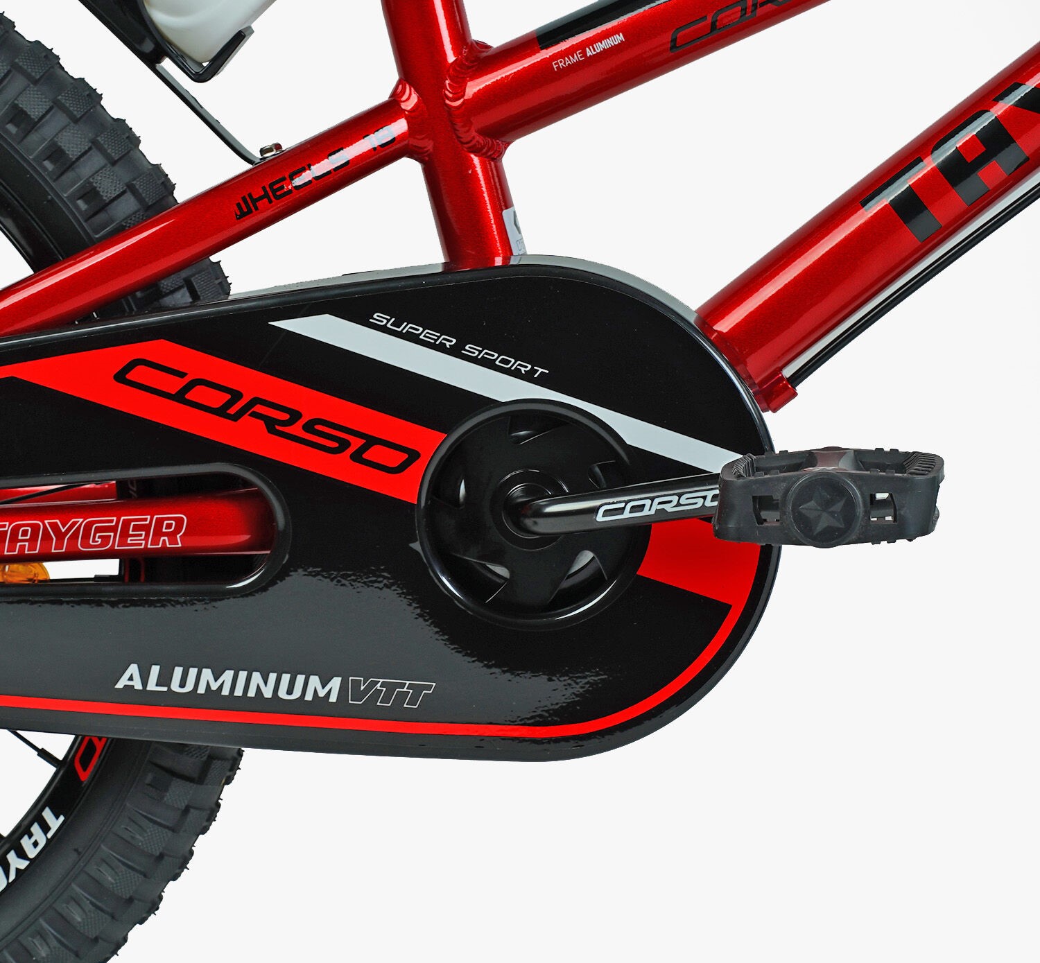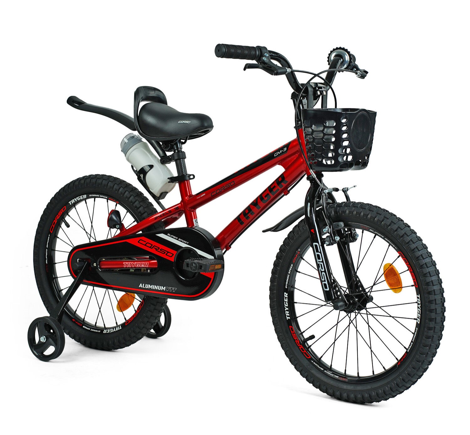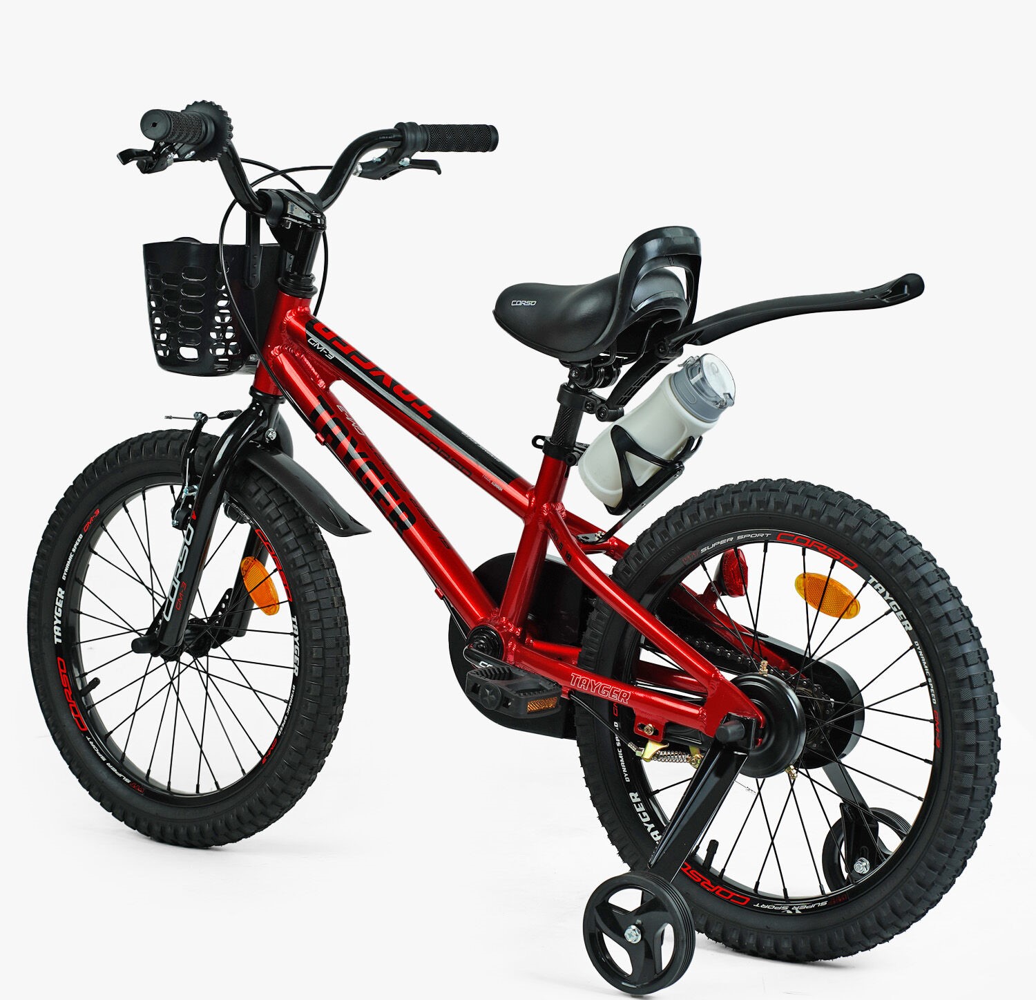 Дитячий велосипед 18 AL Corso «TAYGER» TG-43922 алюмінієва рама темно червоний, ручне гальмо, дод. колеса, дзвоник, бутилочка