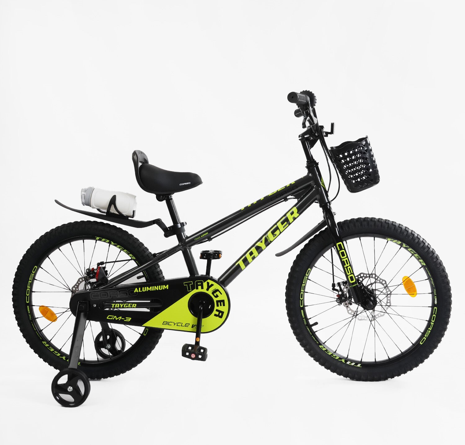 Дитячий велосипед 20 AL Corso «TAYGER» TG-20831 алюмінієва рама, дискові гальма, чорно-жовтий