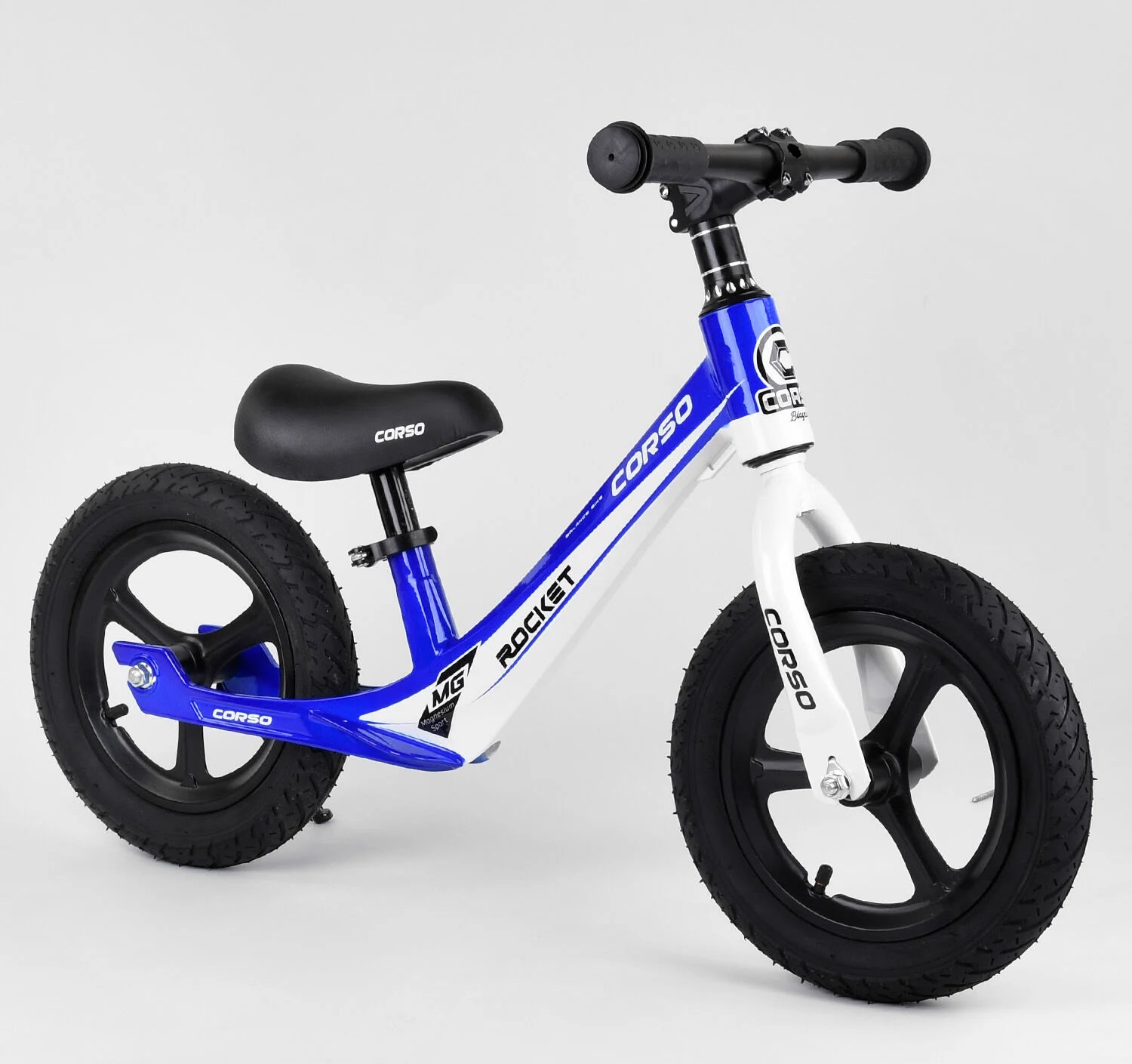 Велобіг 12 Corso надувні колеса, магнієва рама «ROCKET» 91649 синьо-білий