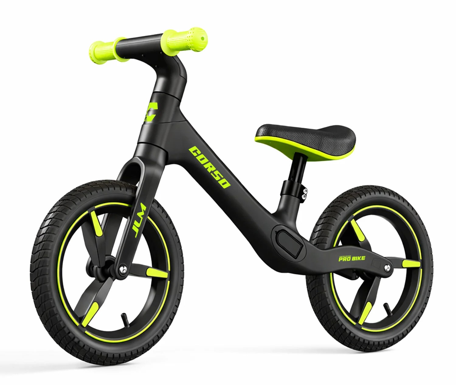 Велобіг 12 Corso надувні колеса, нейлонова рама BL-64189 чорно-салатовий