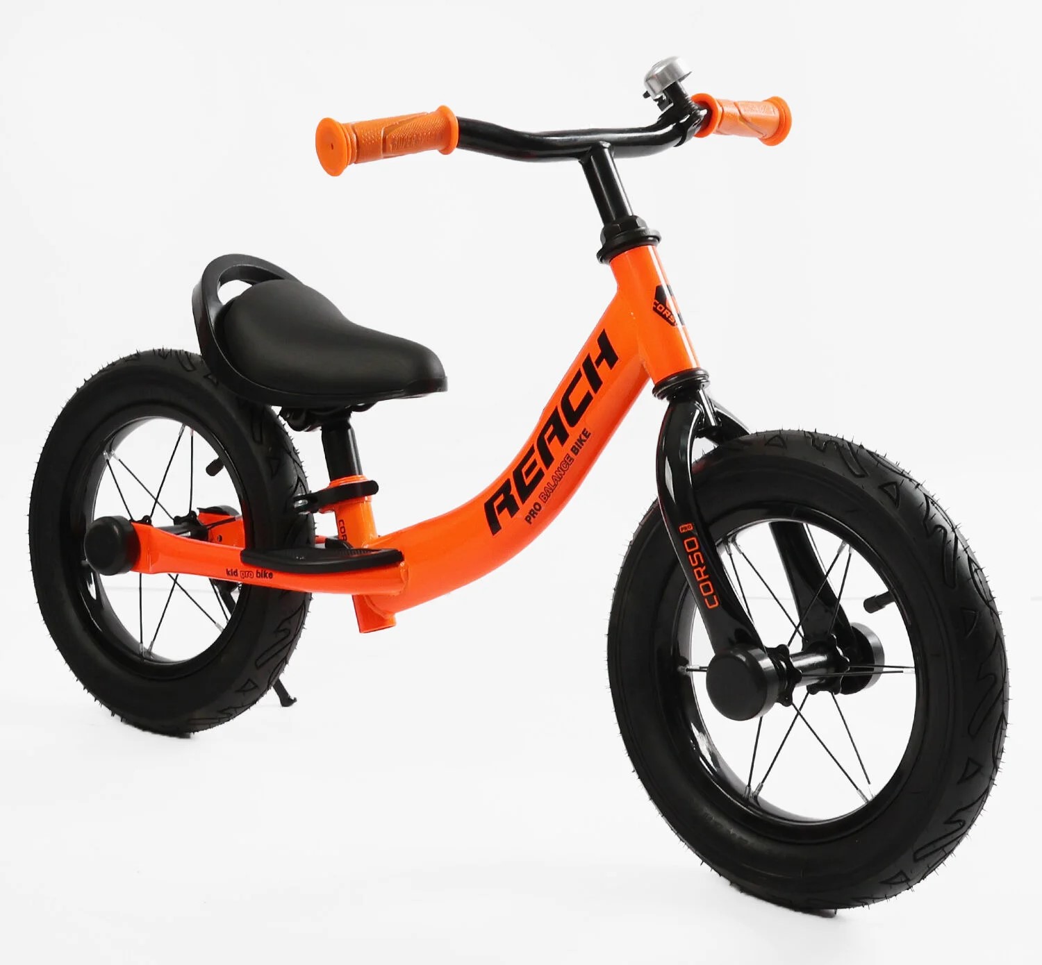 Велобіг 12 Corso надувні колеса, сталева рама «REACH» RC-6380-94 помаранчевий, підніжка, підставка для ніг, дзвіночок