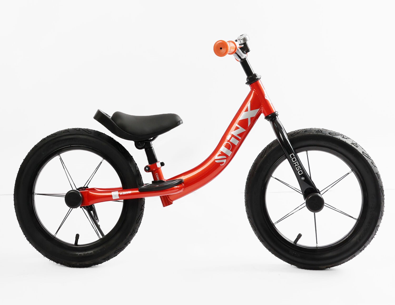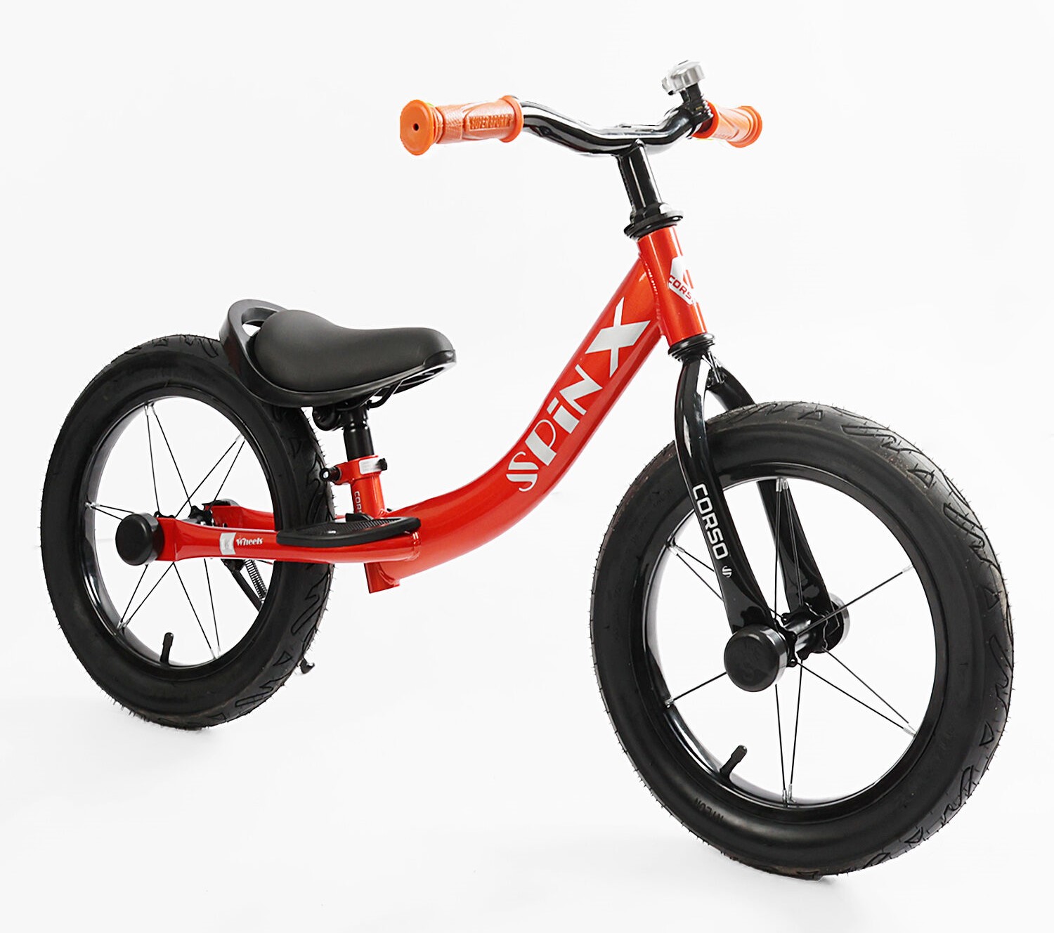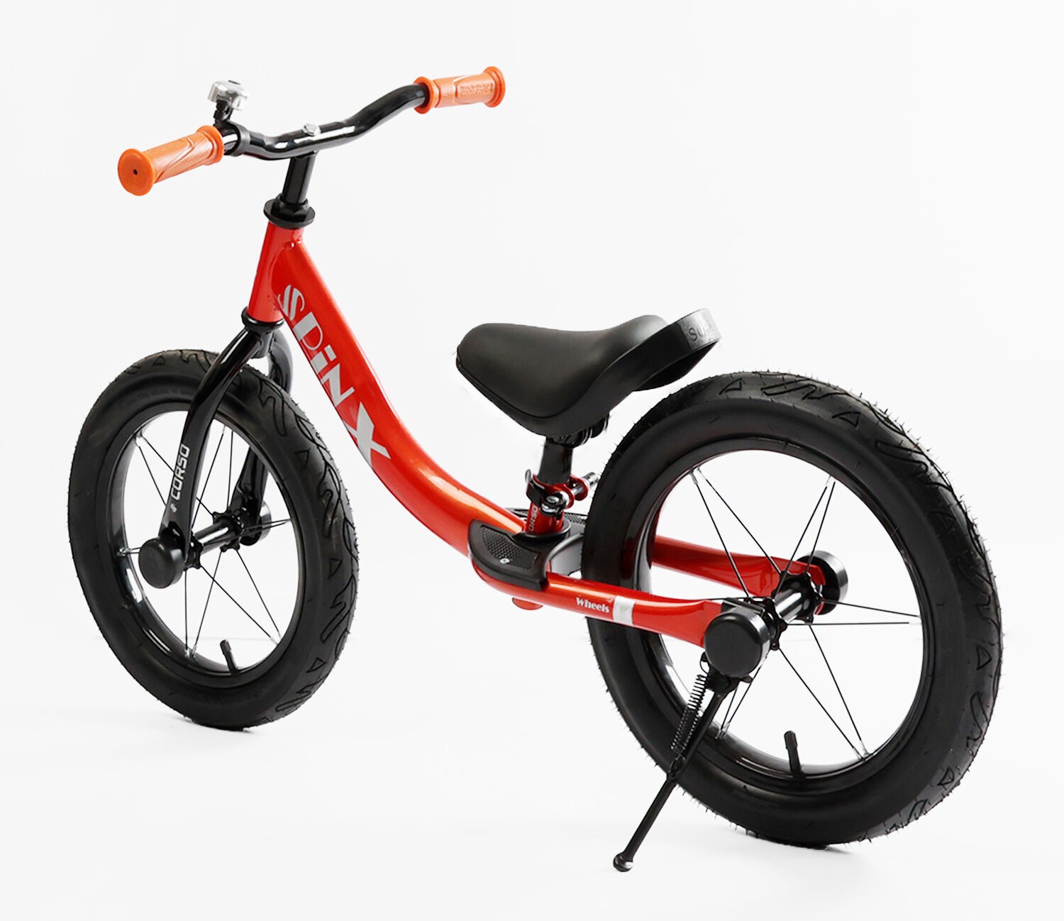 Велобіг 14 Corso надувні колеса, сталева рама «SPIN-X» PX-280-14 червоний, підніжка, підставка для ніг, дзвіночок