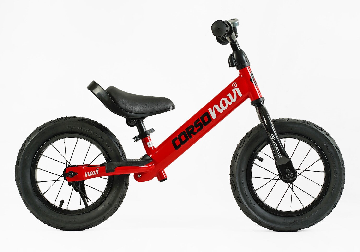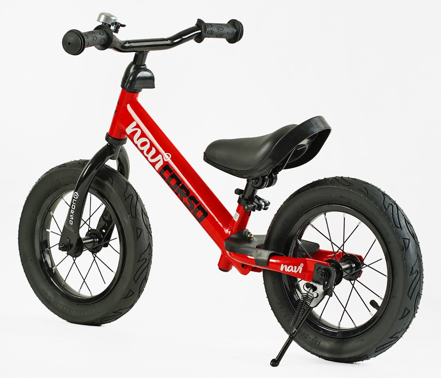 Велобіг 12 Corso надувні колеса, сталева рама «NAVI» NV-12306 червоний, підніжка, підставка для ніг, дзвіночок