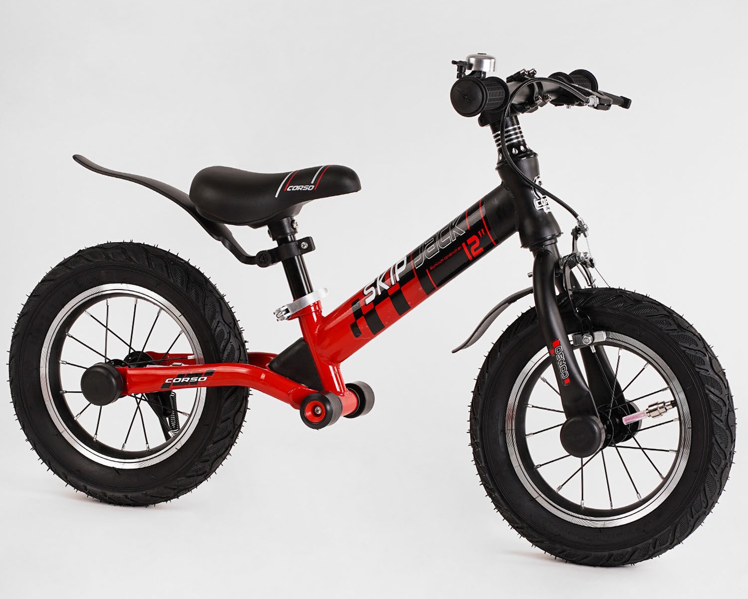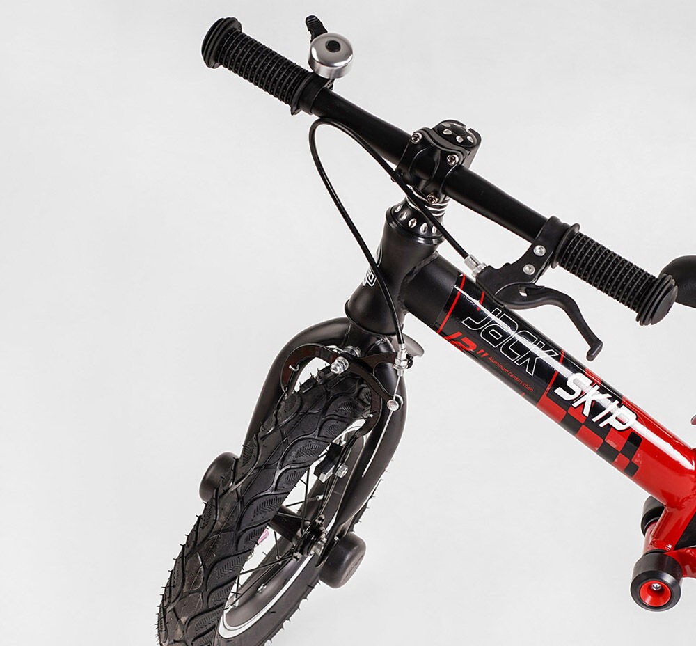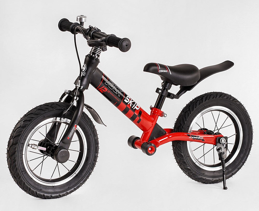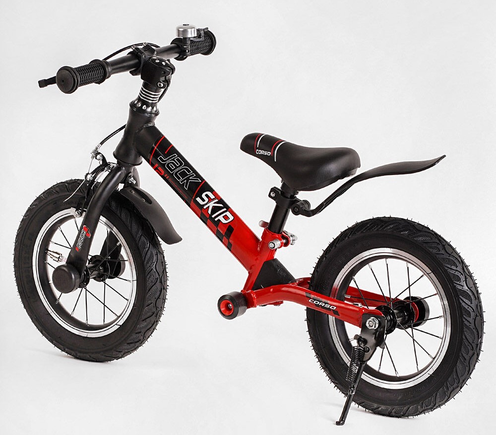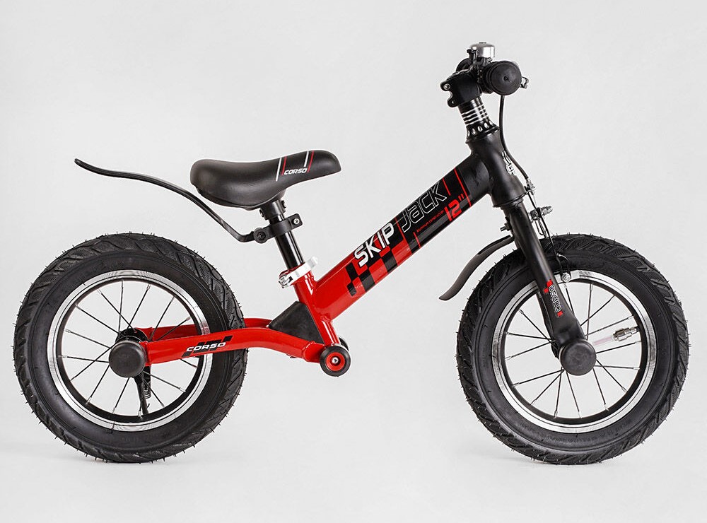 Велобіг 12 Corso надувні колеса, сталева рама «SKIP JACK» 44538 ручне гальмо, з амортизатором, чорно-червоний