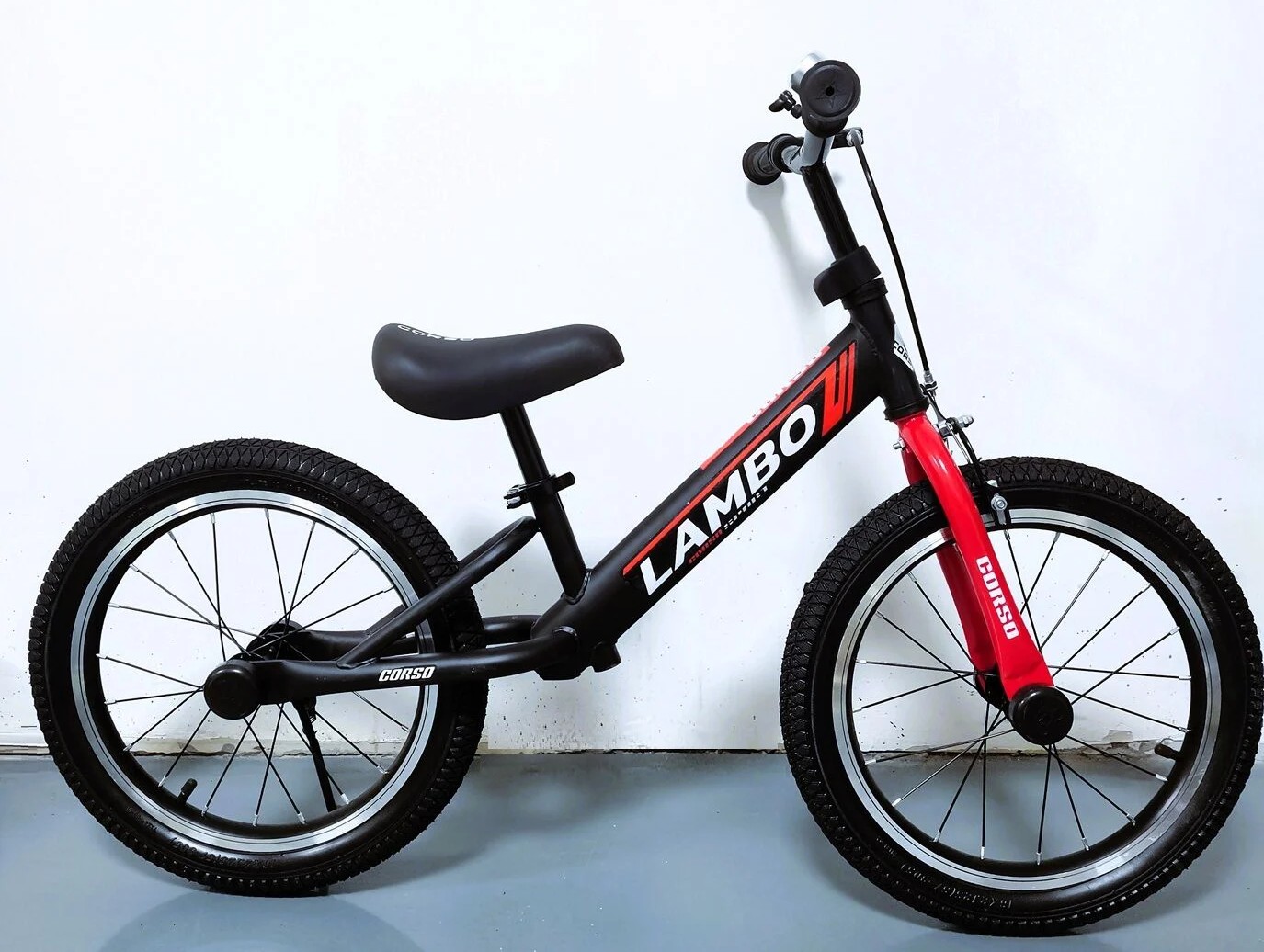Велобіг 16 Corso надувні колеса, сталева рама «LAMBO» LM-72939 чорно-червоний