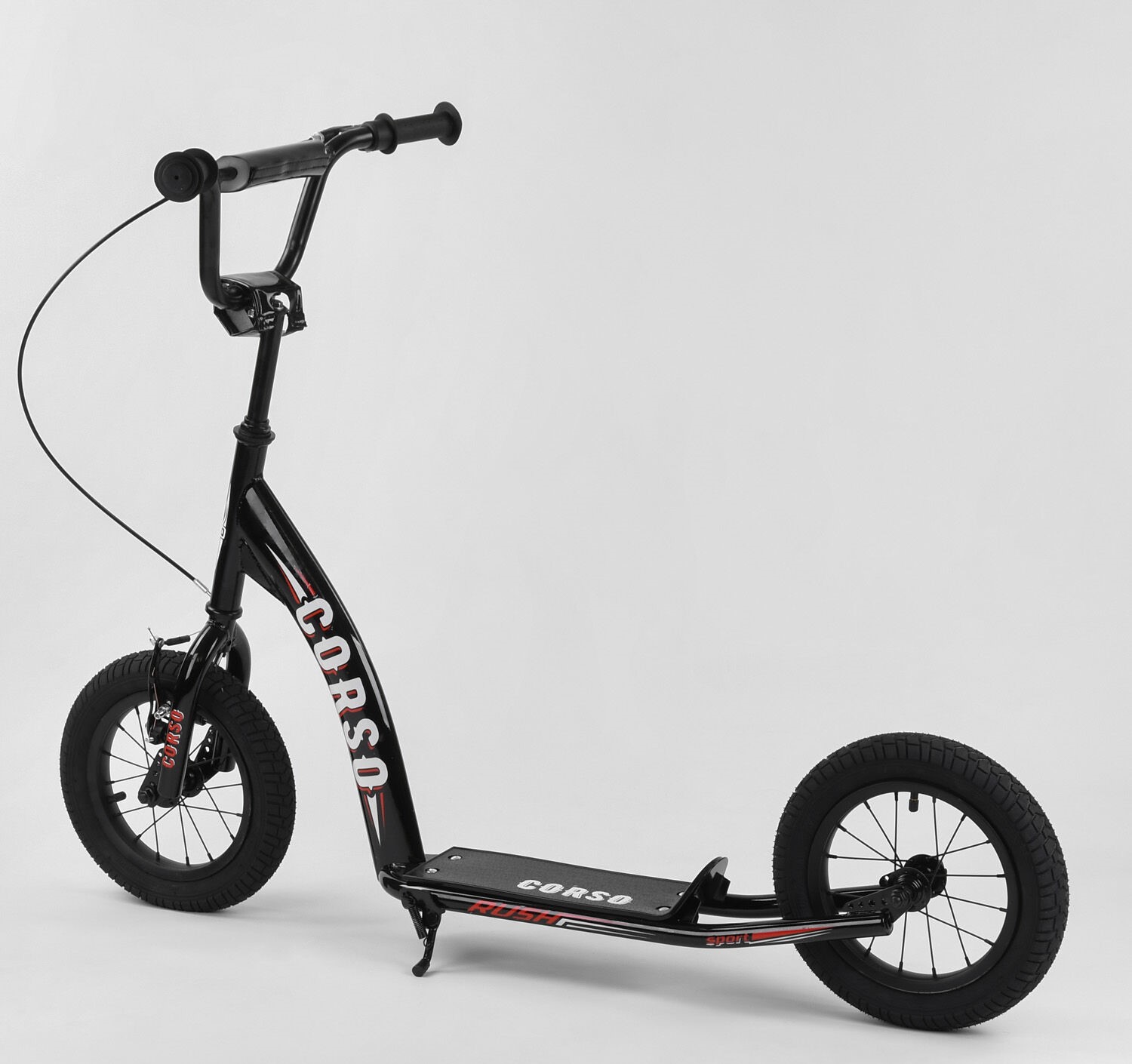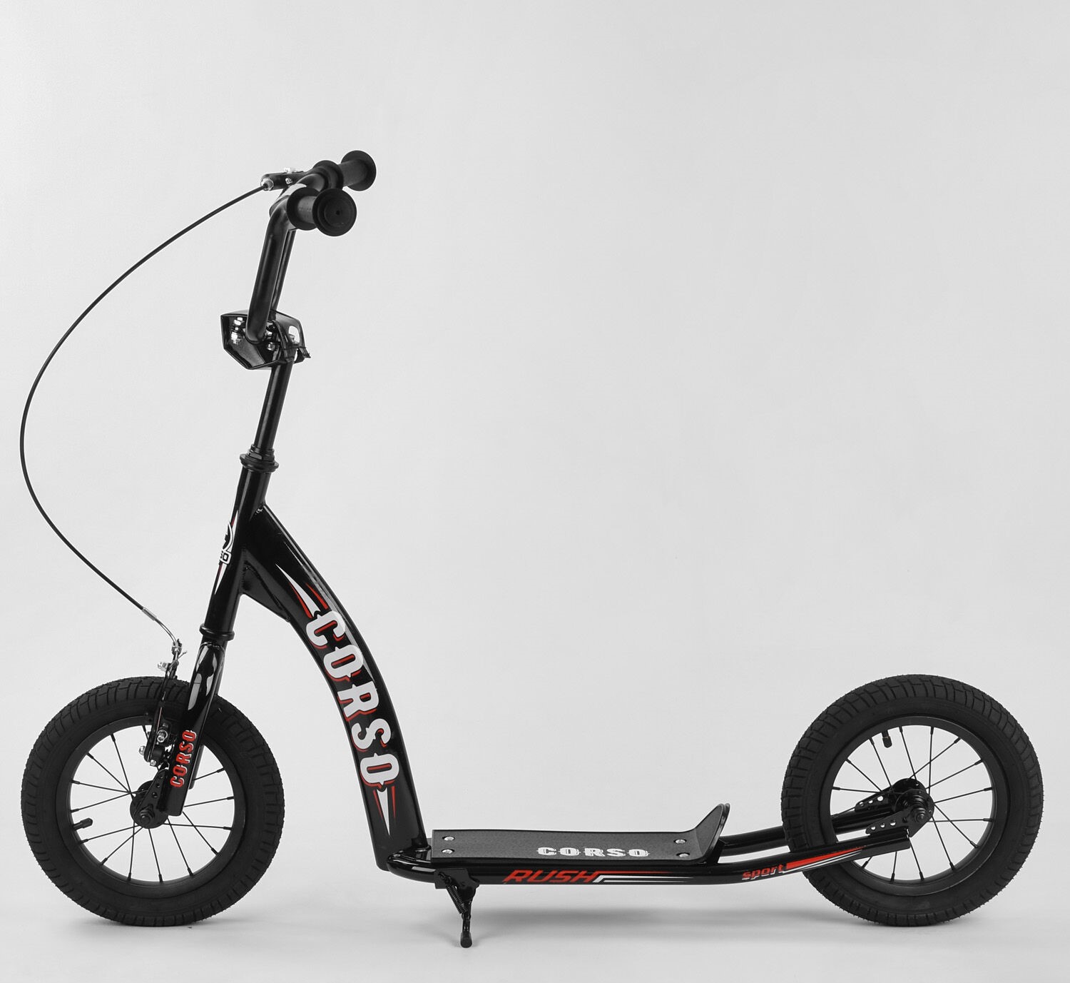 Самокат дитячий 2-х колісний, надувні колеса 12 Corso CR-T 5656 чорний, ручне переднє гальмо