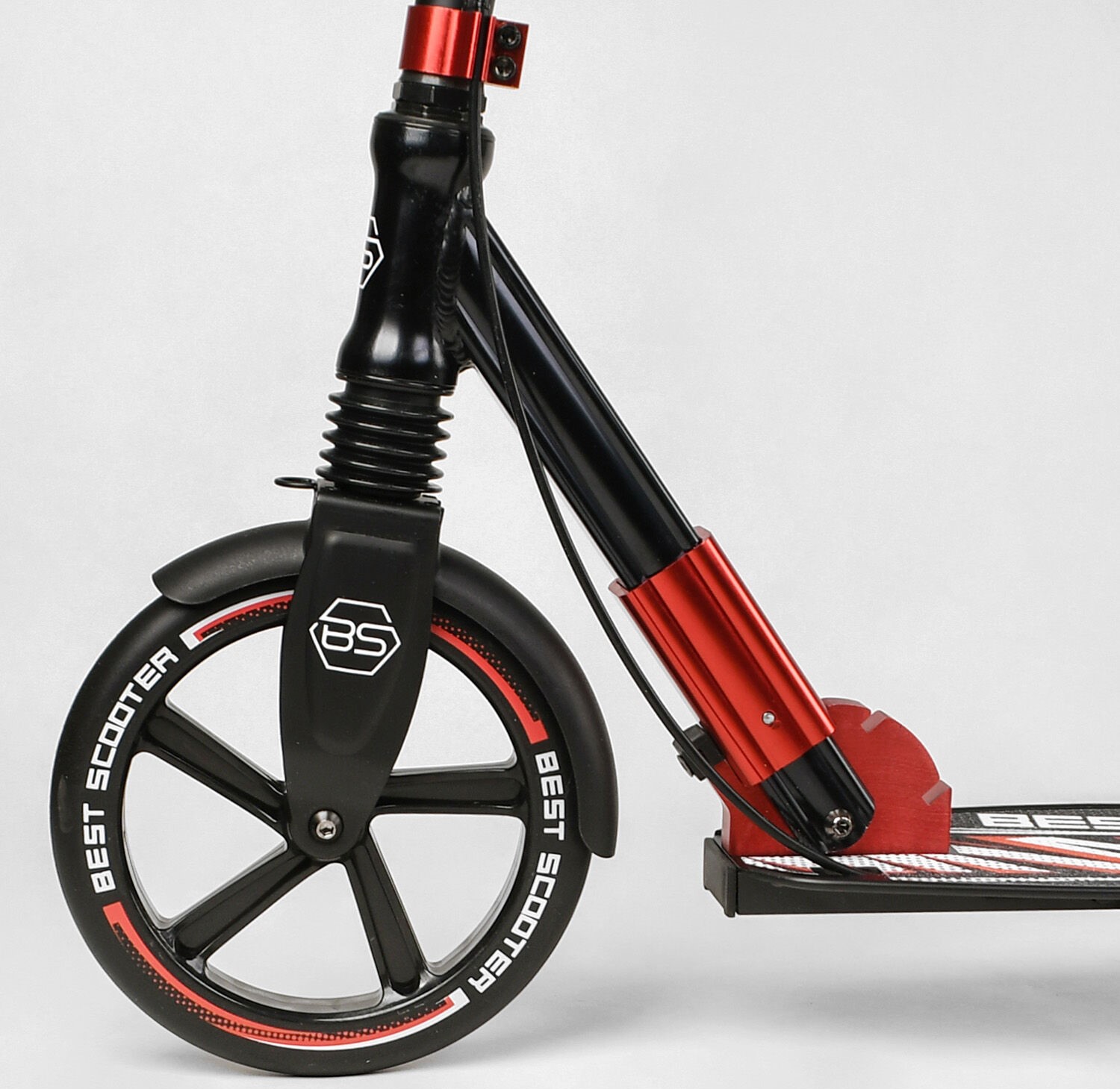 Самокат дитячий 2-х колісний, PU Best Scooter 10304 чорно-червоний, колеса Ø230-200mm, AL, 1 амортизатор передній, ФАРА, затискач керма