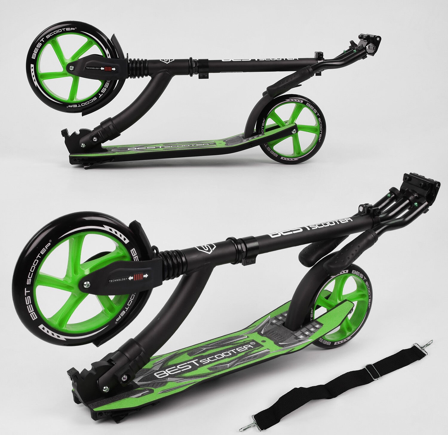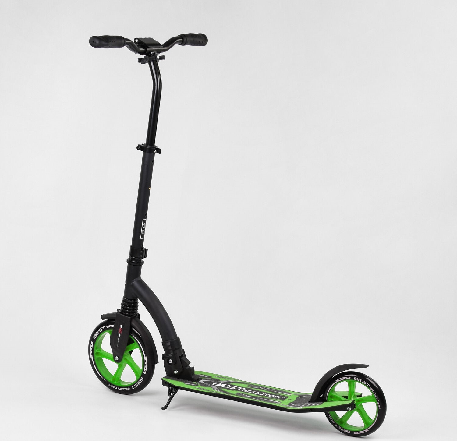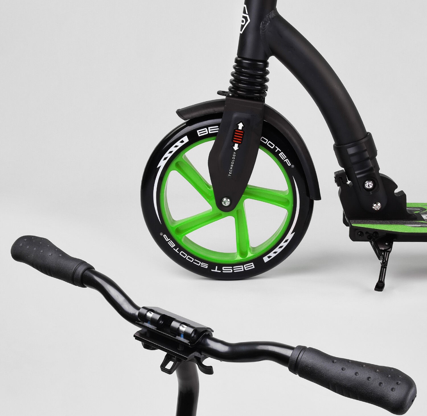 Самокат дитячий 2-х колісний, PU Best Scooter 52266 чорно-салатовий, колеса Ø230-200mm, AL, 1 амортизатор, широкий руль, зажим руля