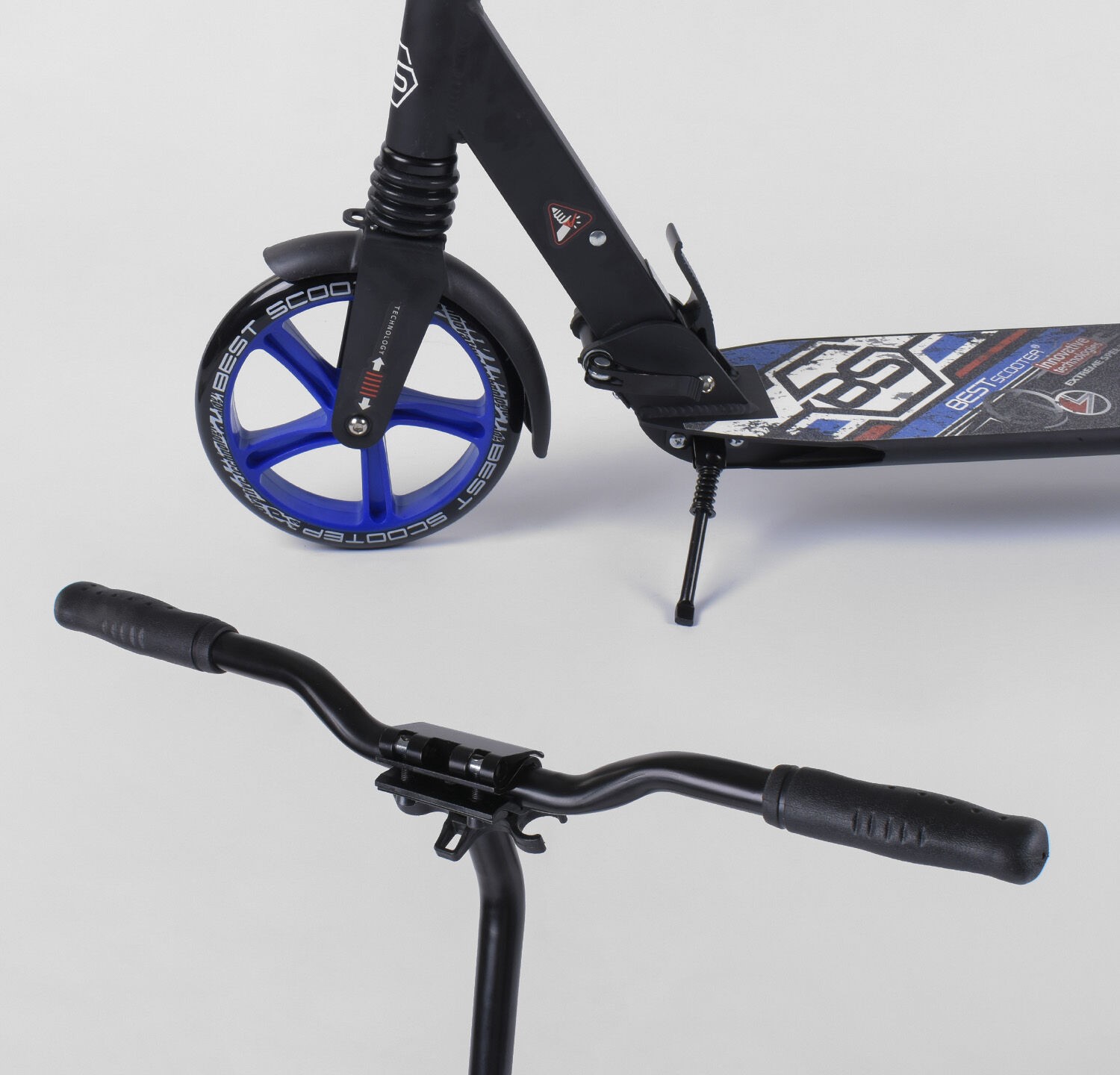 Самокат дитячий 2-х колісний, PU Best Scooter 73193 чорно-синій , Ø200mm, AL, 2 амортизатора