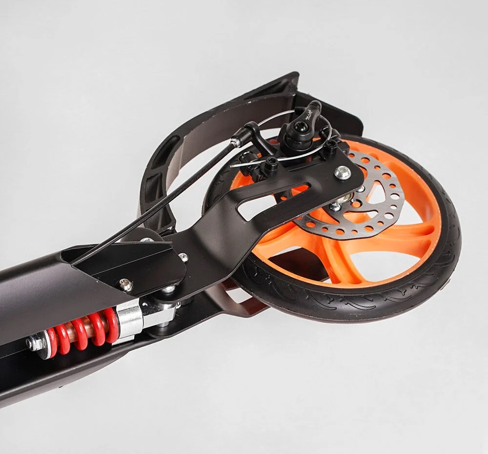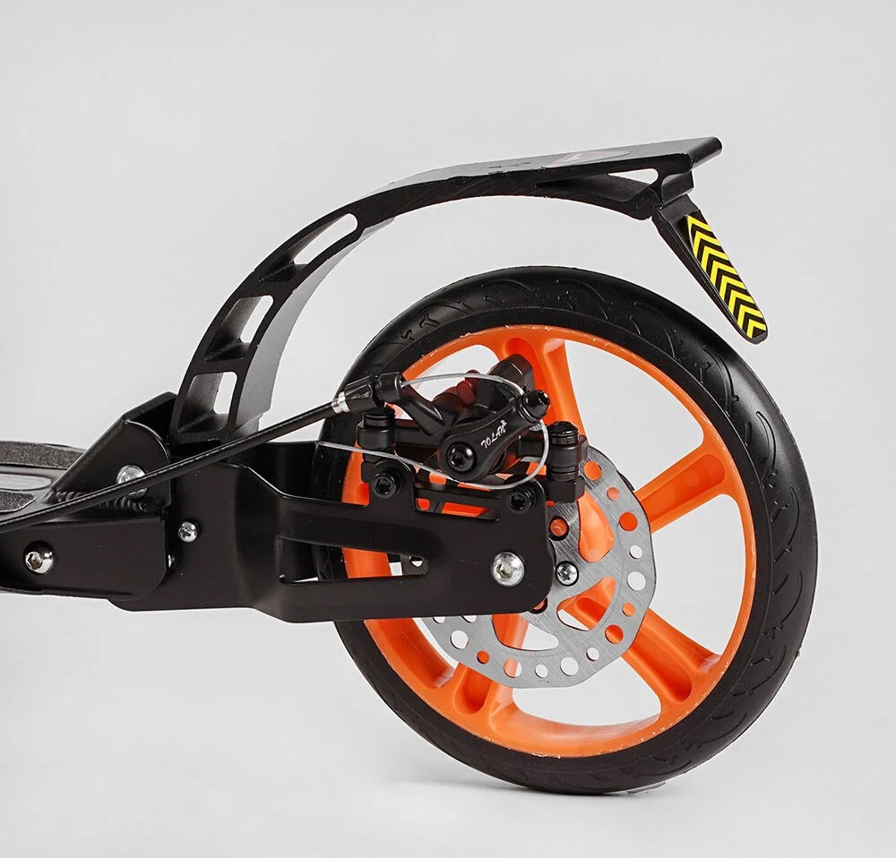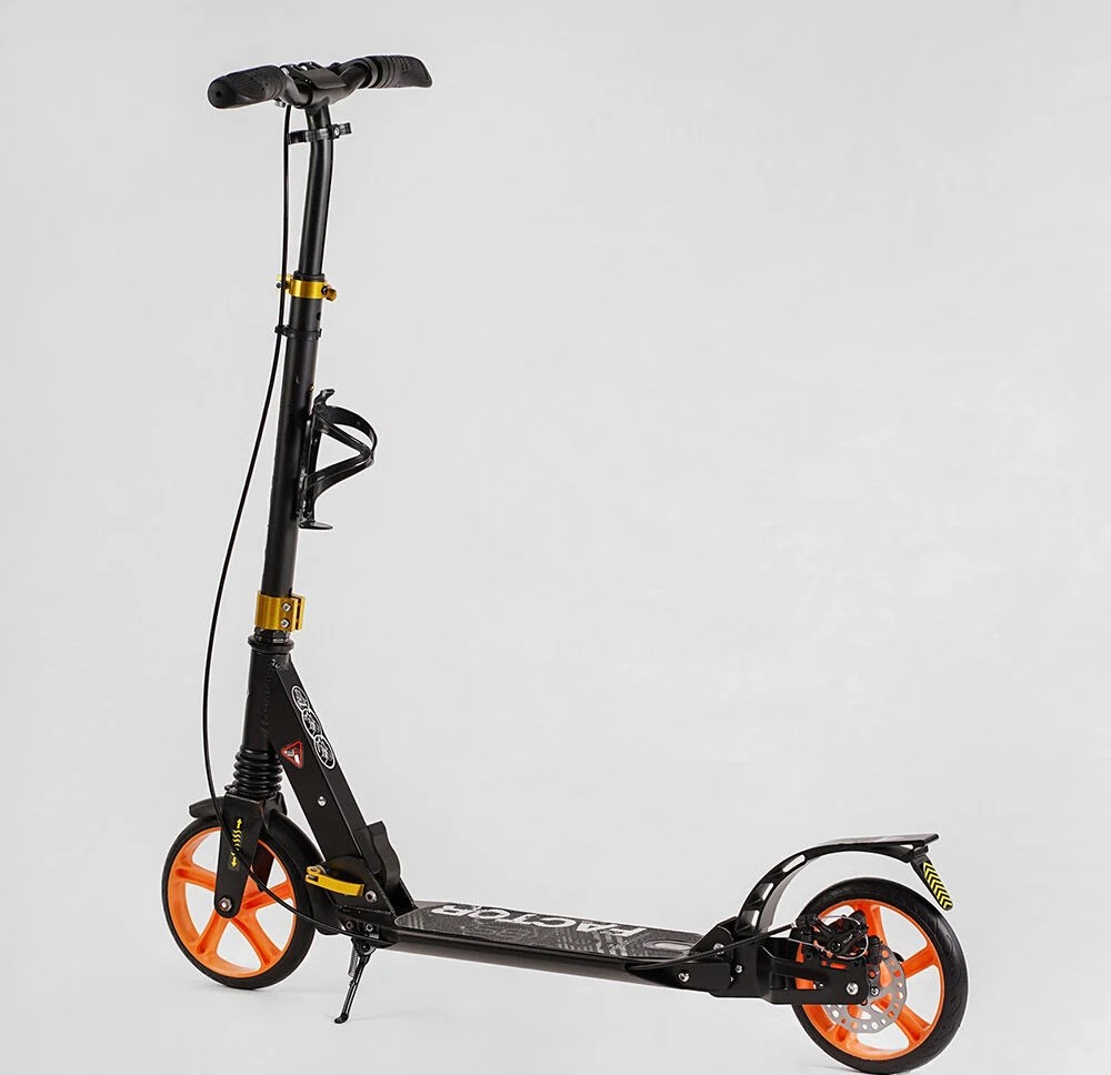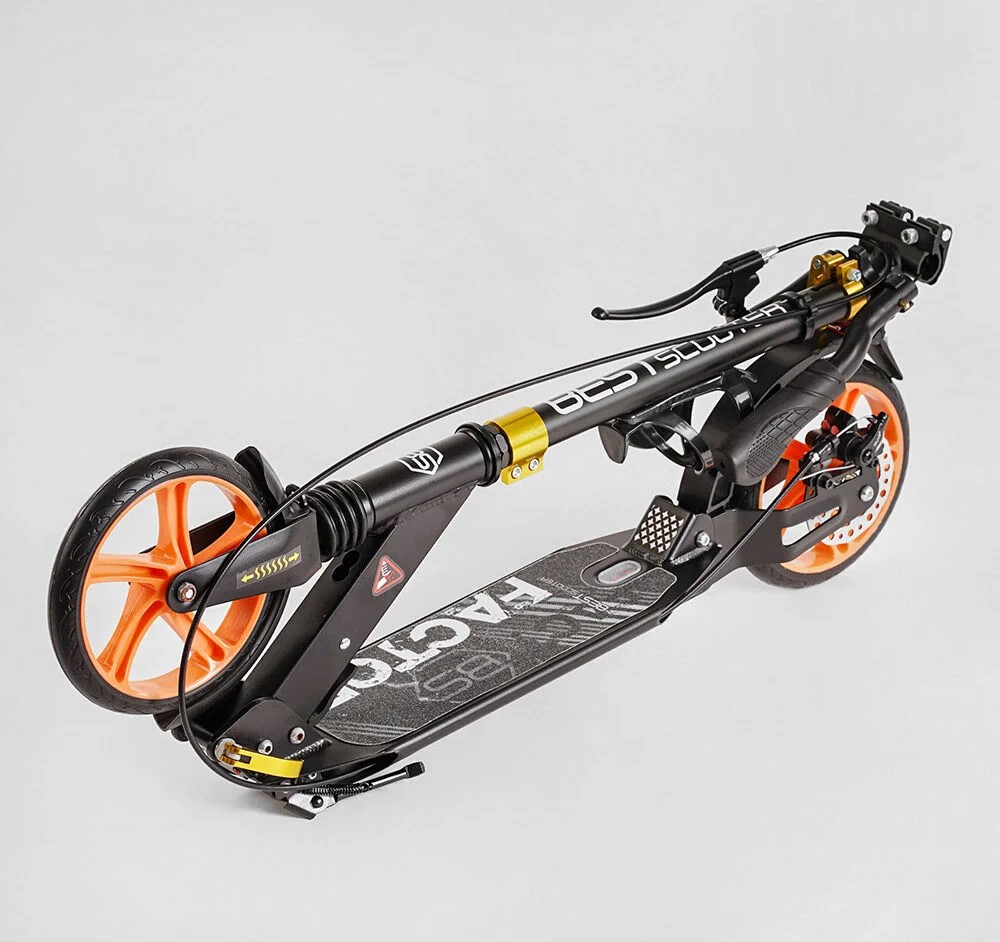 Самокат дитячий 2-х колісний, PU Best Scooter «FACTOR» BS-98033 чорно-помаранчевий,, Ø200mm, AL, 2 амортизатора, фляготримач
