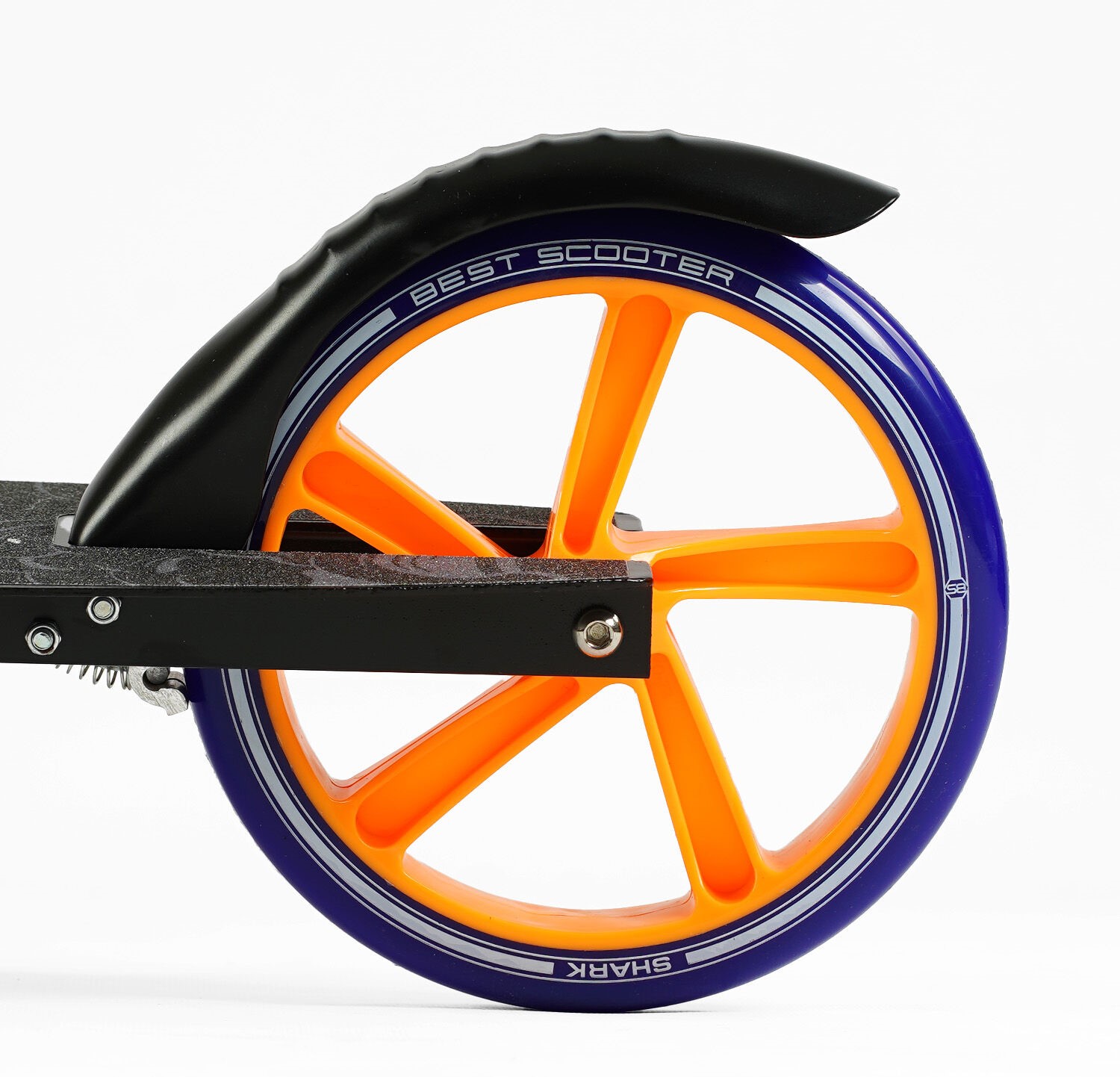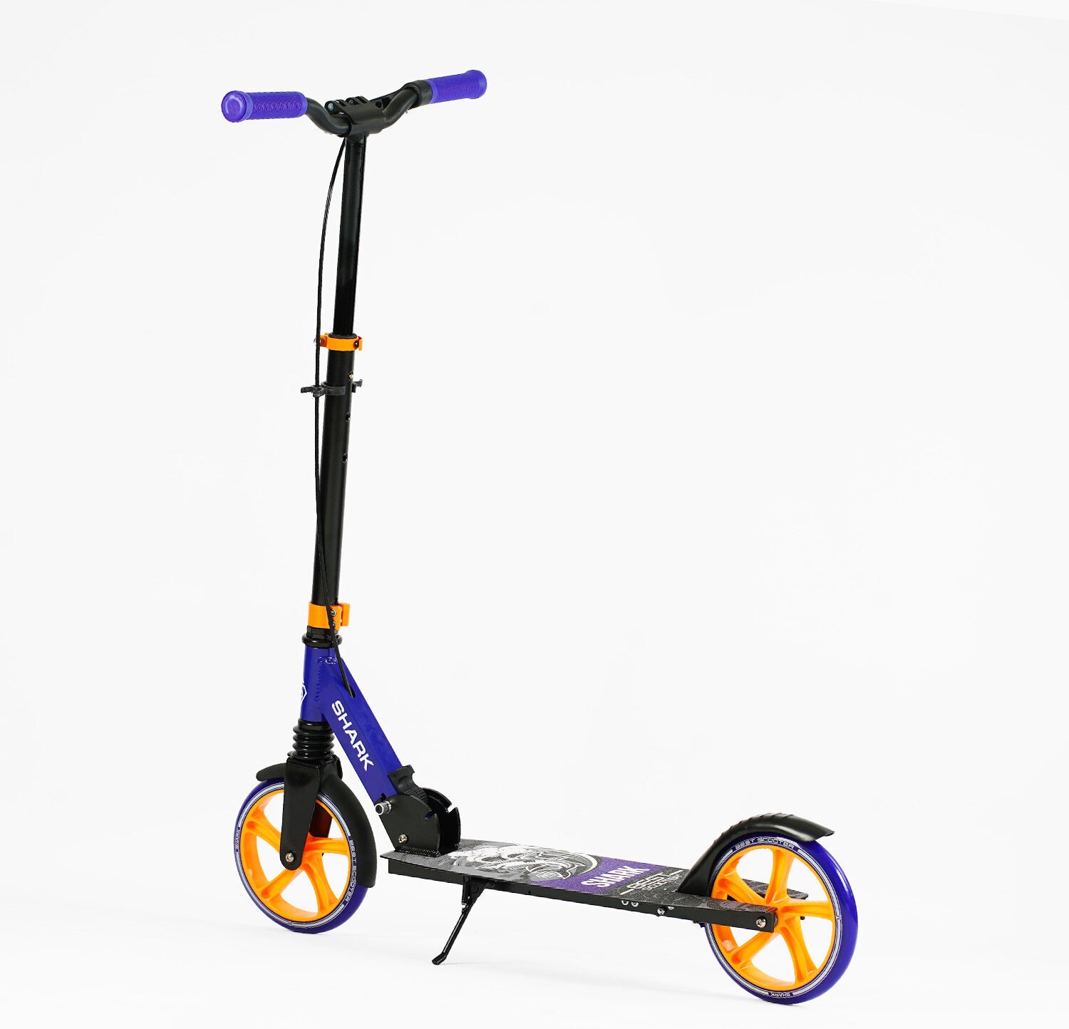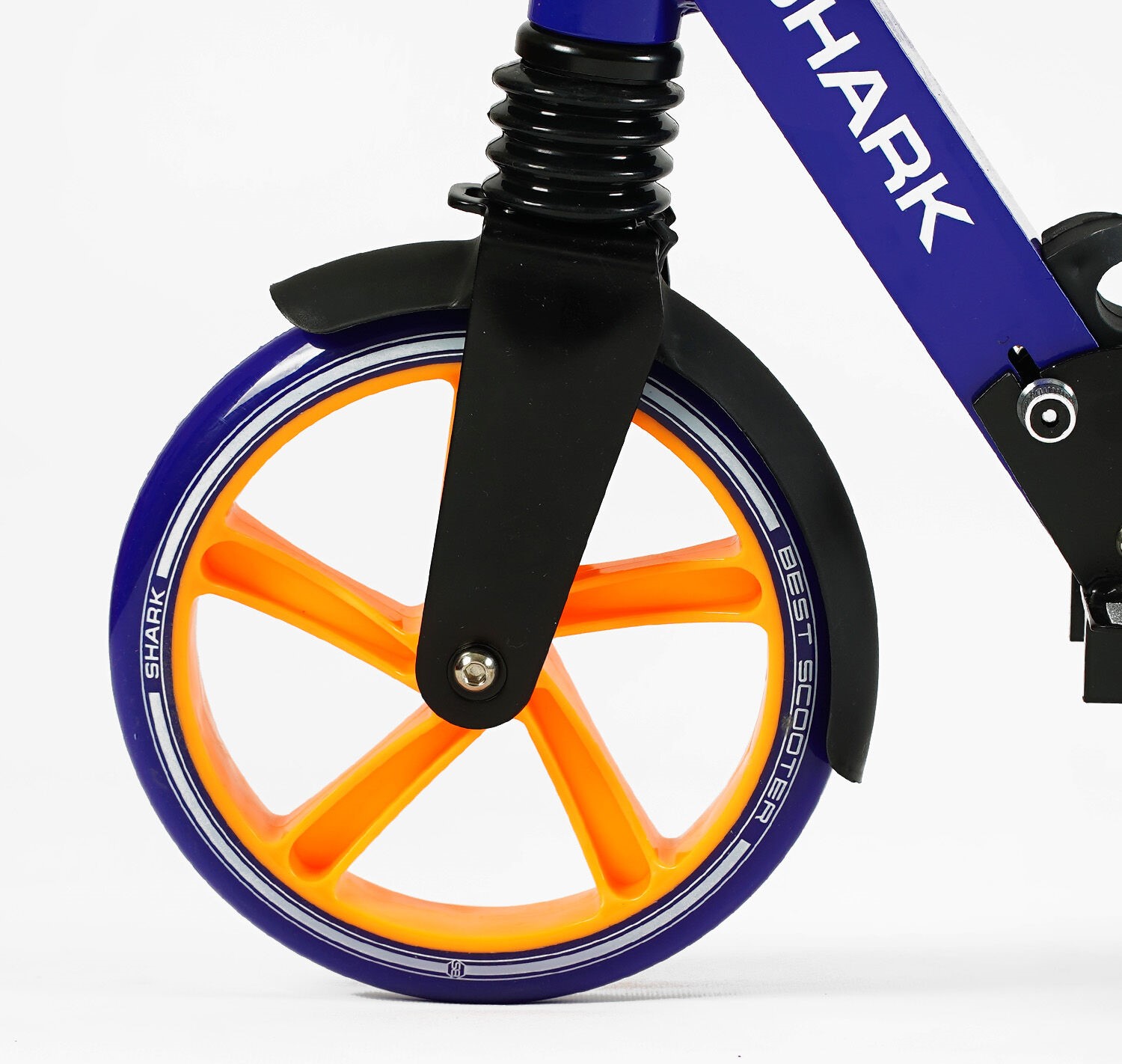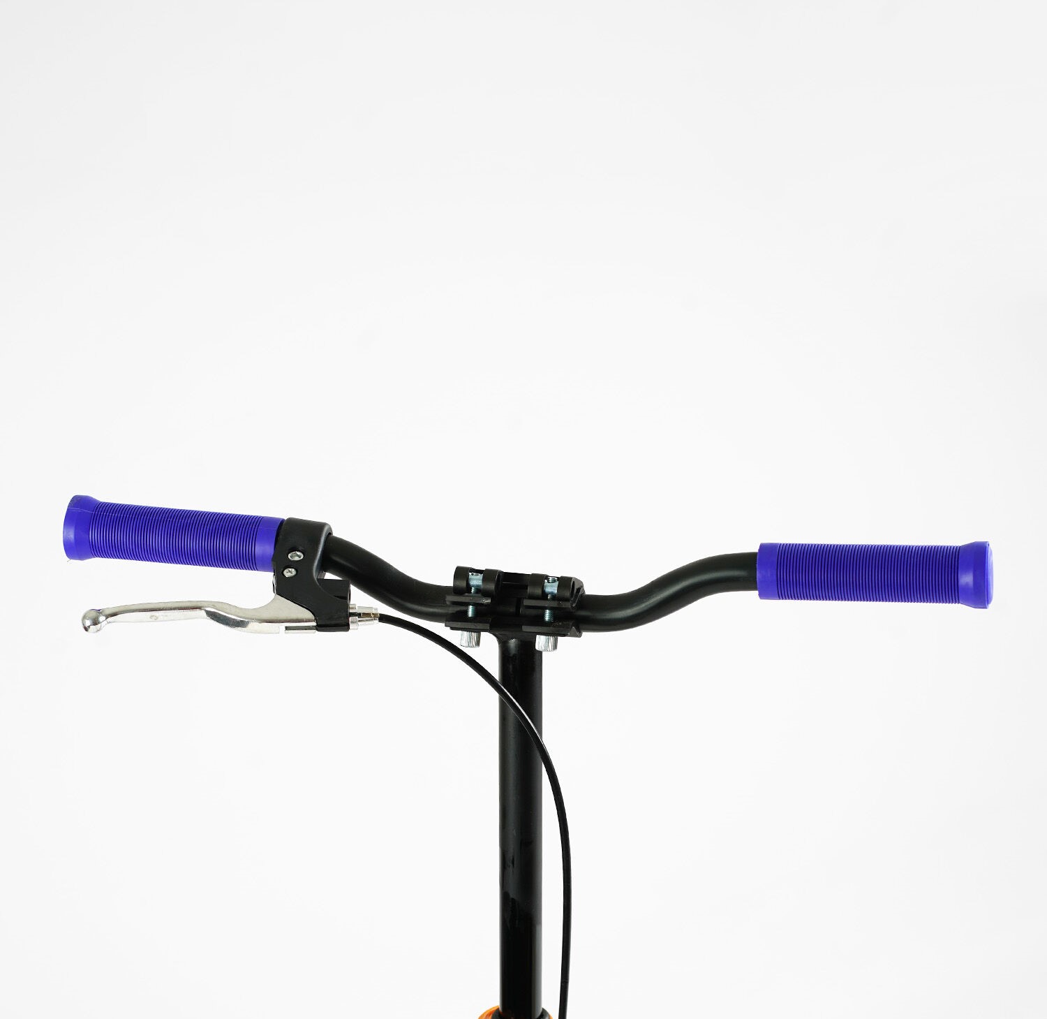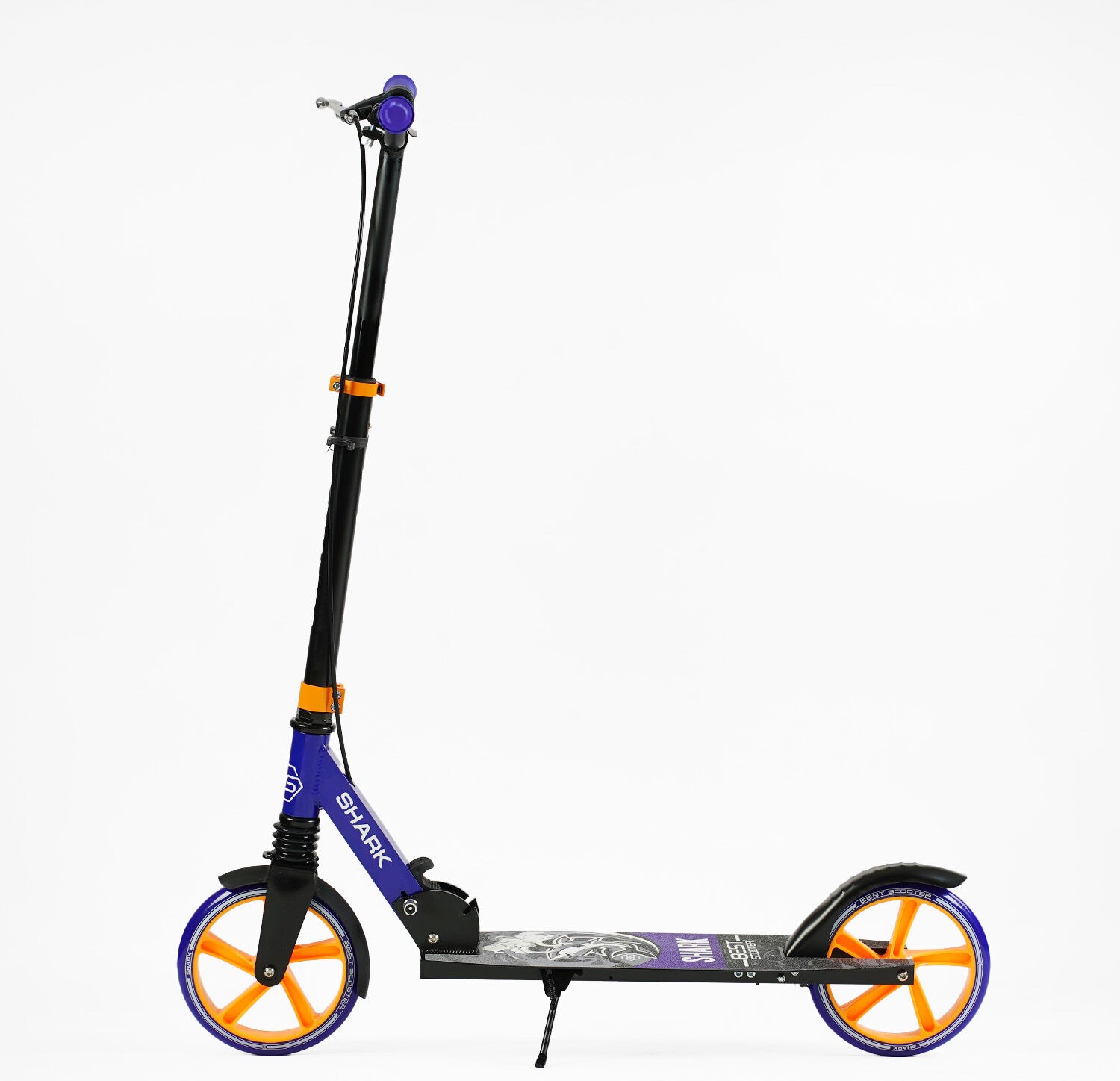 Самокат дитячий 2-х колісний, PU Best Scooter «SHARK» SH-10042 синьо-помаранчевий, Ø200mm, з ручним гальмом, затискач керма, 1 амортизатор