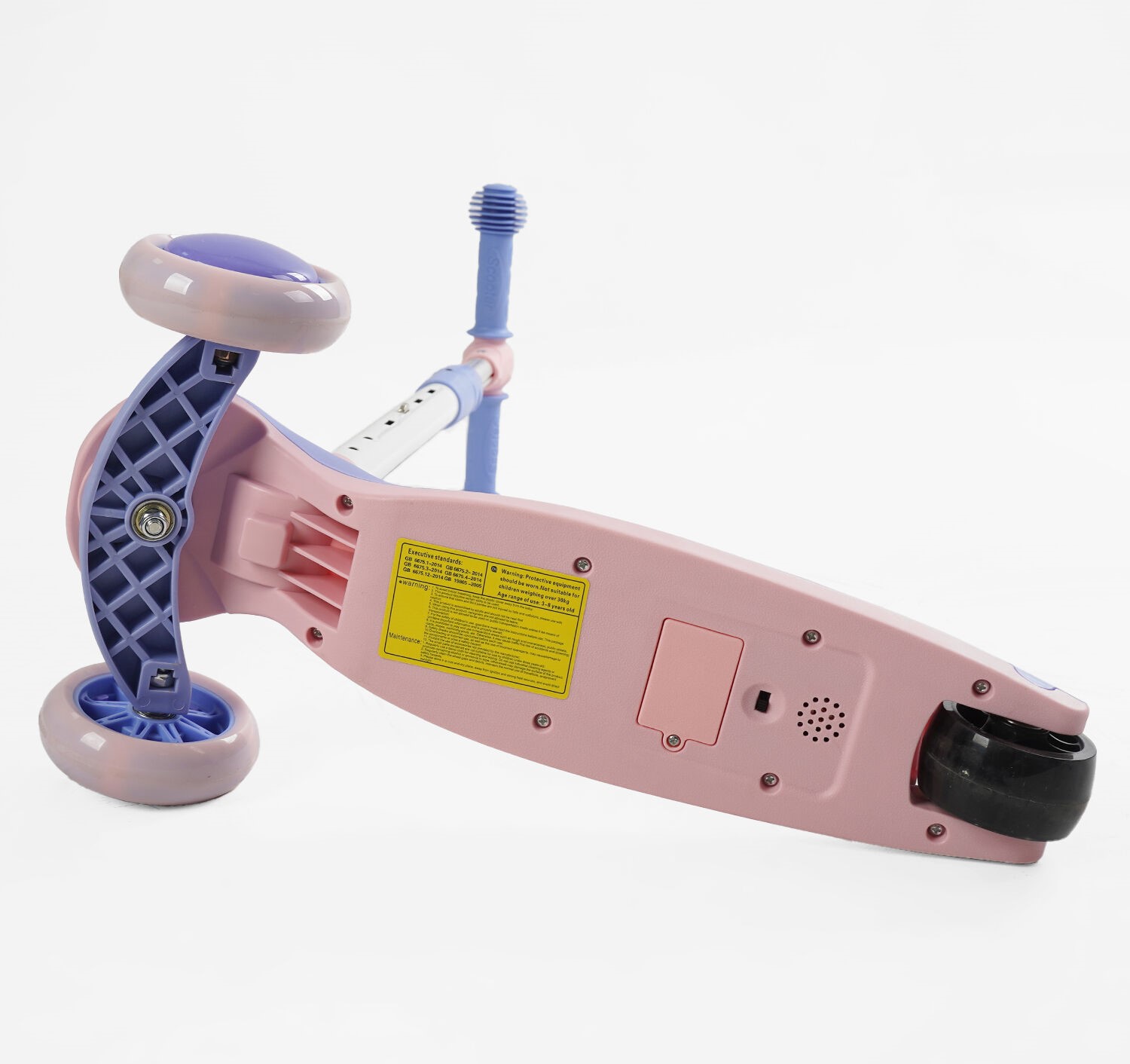 Самокат дитячий 3-х колісний Skyper MR-03465 фіолетовий, колеса PU Ø114mm/35mm зі світлом, музика та підсвічування платформи, кермо складне