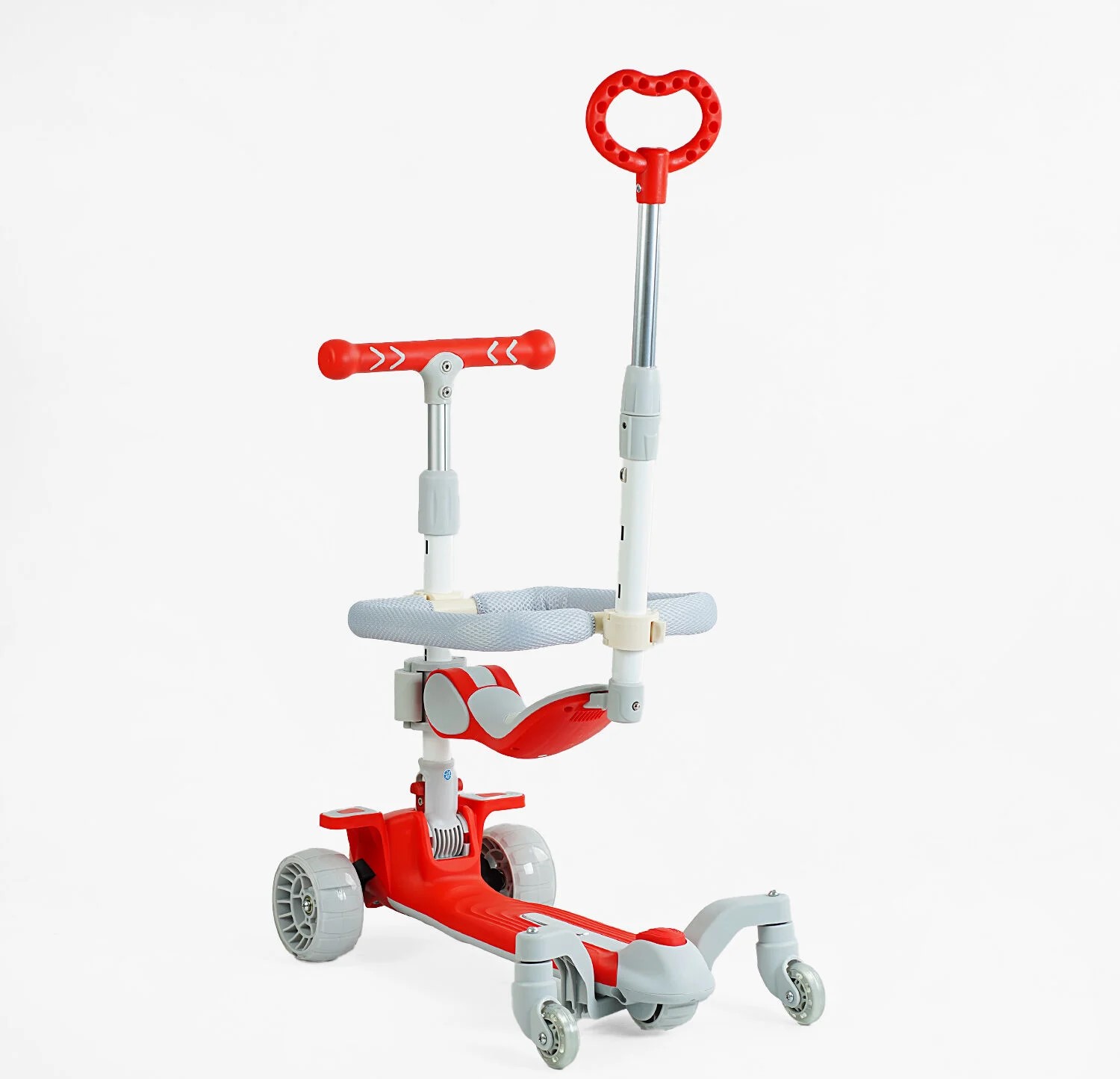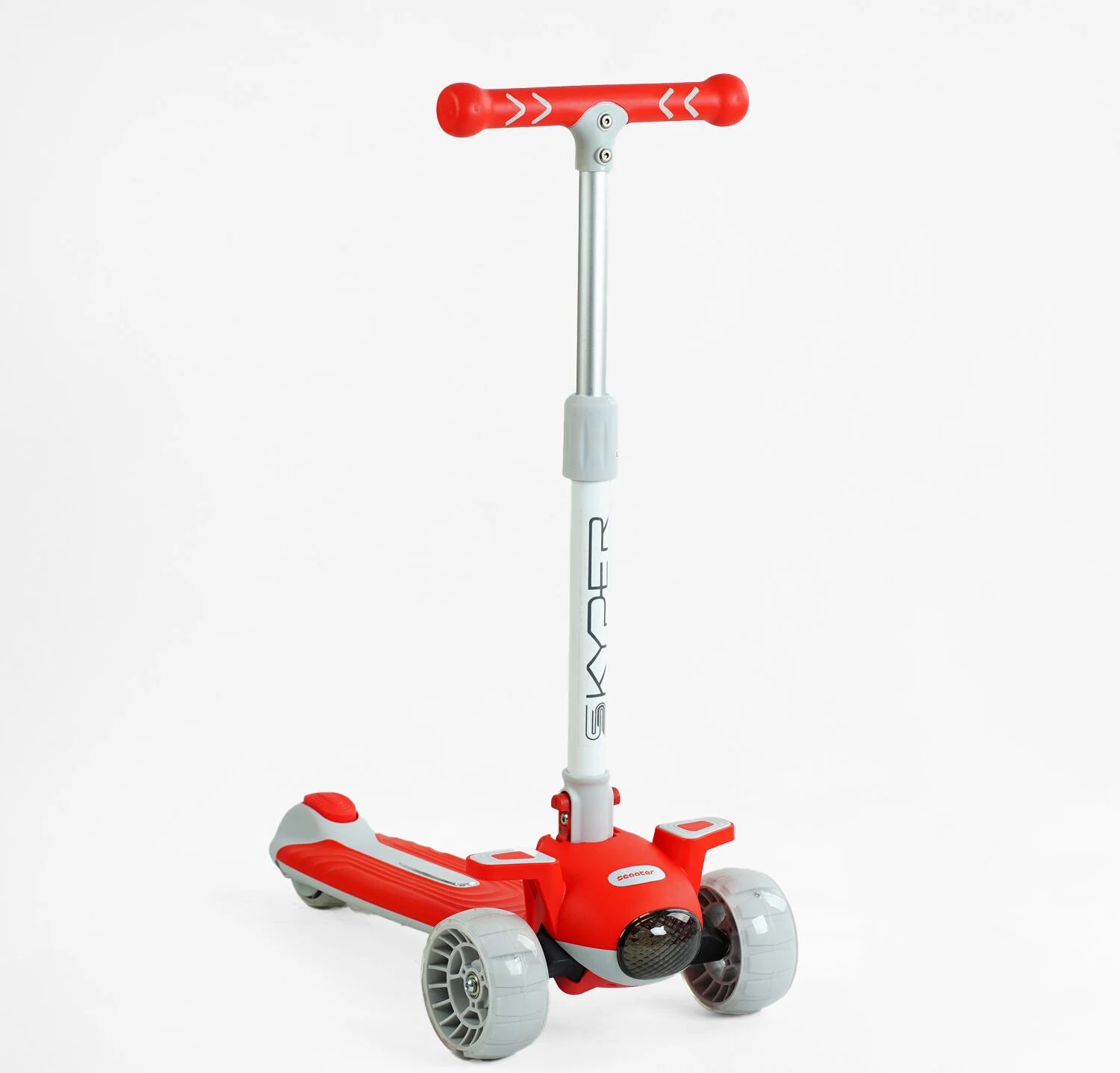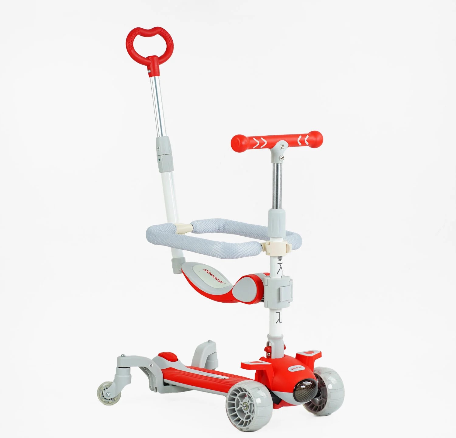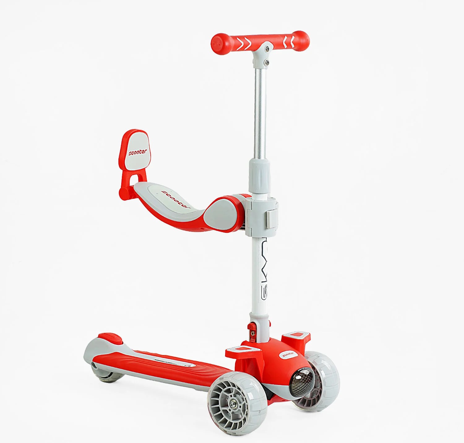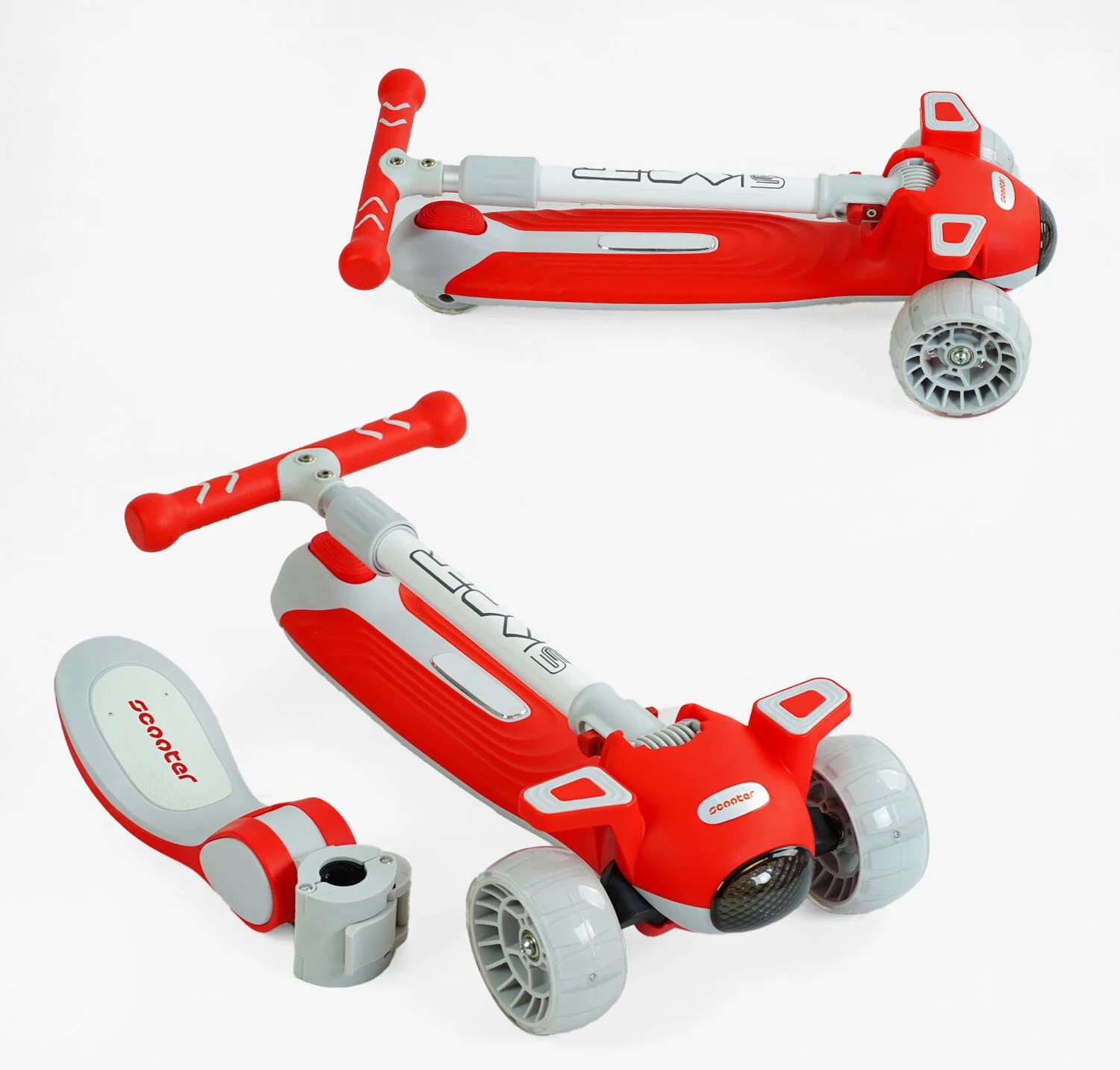 Самокат 5в1 Skyper J-08328, колеса PU 125х40мм зі світлом, укр.озвучування та підсвічування платформи, сіро-червоний