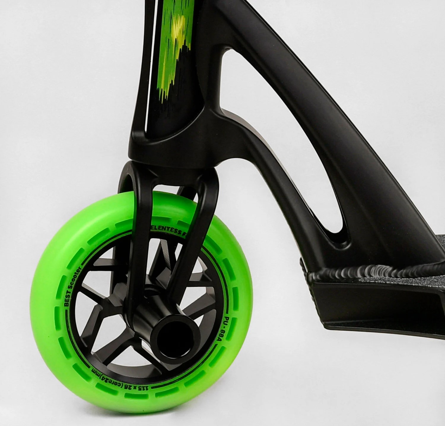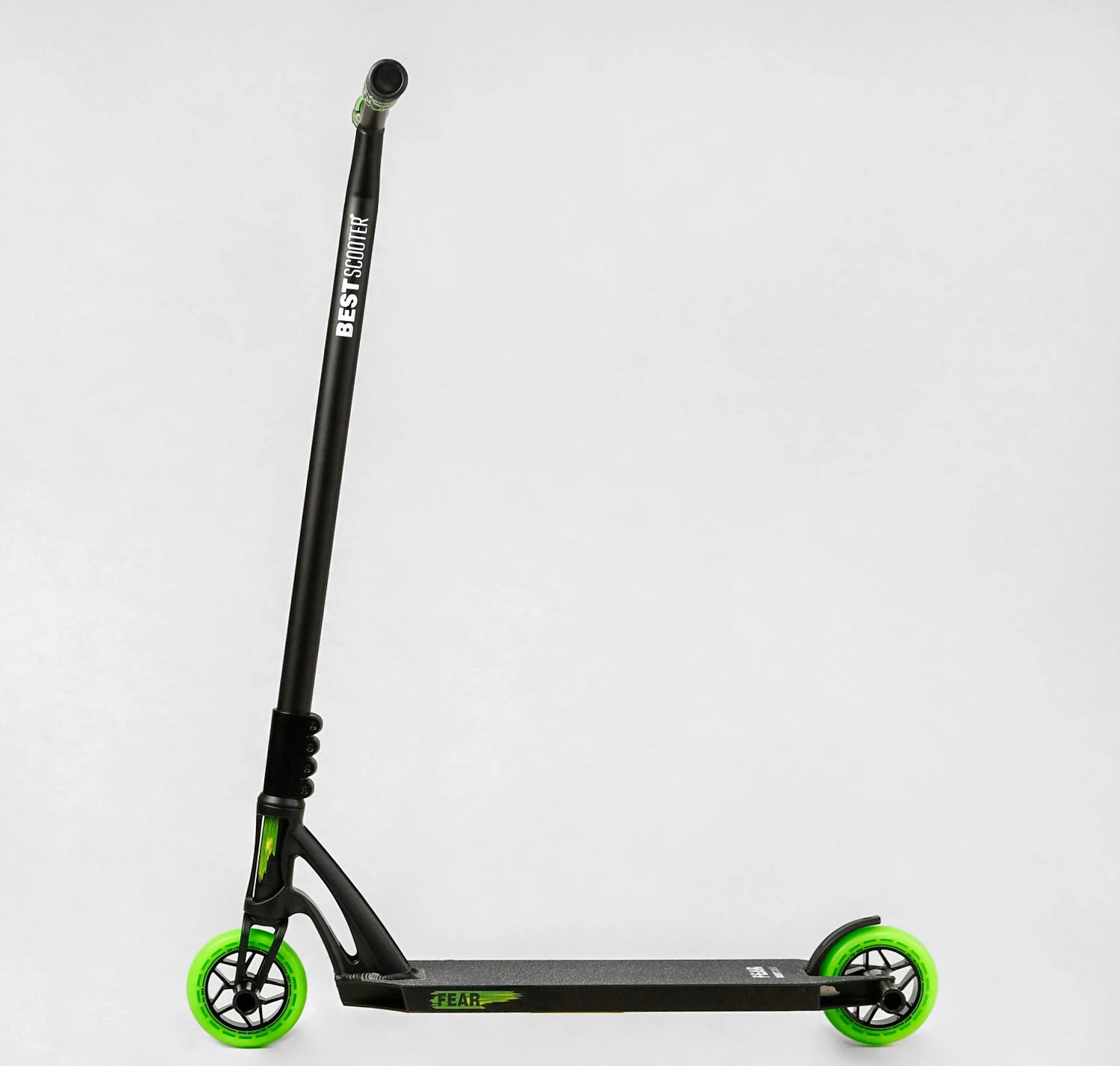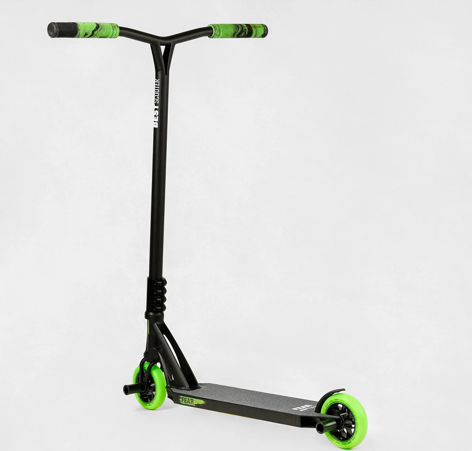 Самокат трюковий Best Scooter «FEAR» МТ-60611 чорно-салатовий, SCS-система, пеги, AL диск та дека, колеса PU Ø115mm, ширина керма - 58 см