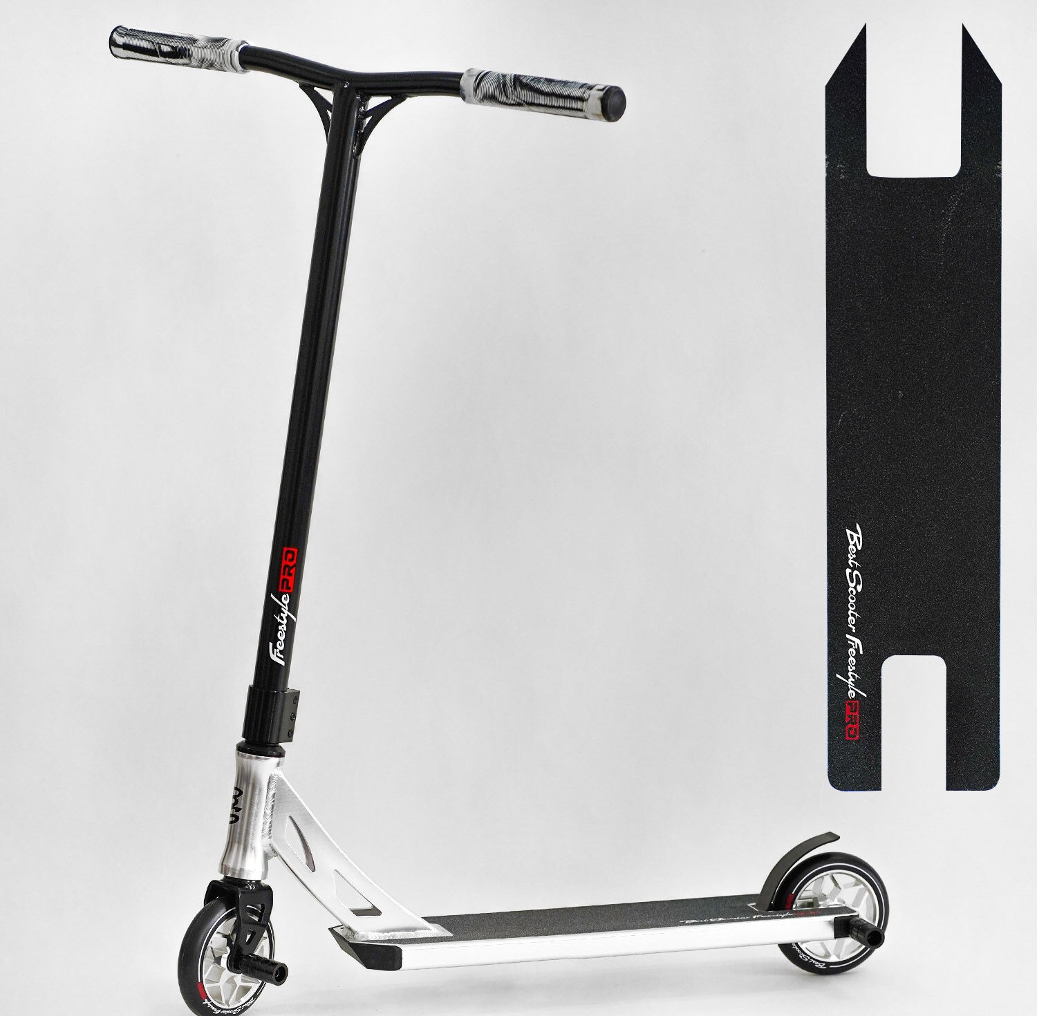 Самокат трюковий Best Scooter «FREESTYLE» N-31020 чорно-срібний, HIC-система, пеги, AL диск та дека, колеса PU Ø120mm, ширина керма - 58 см