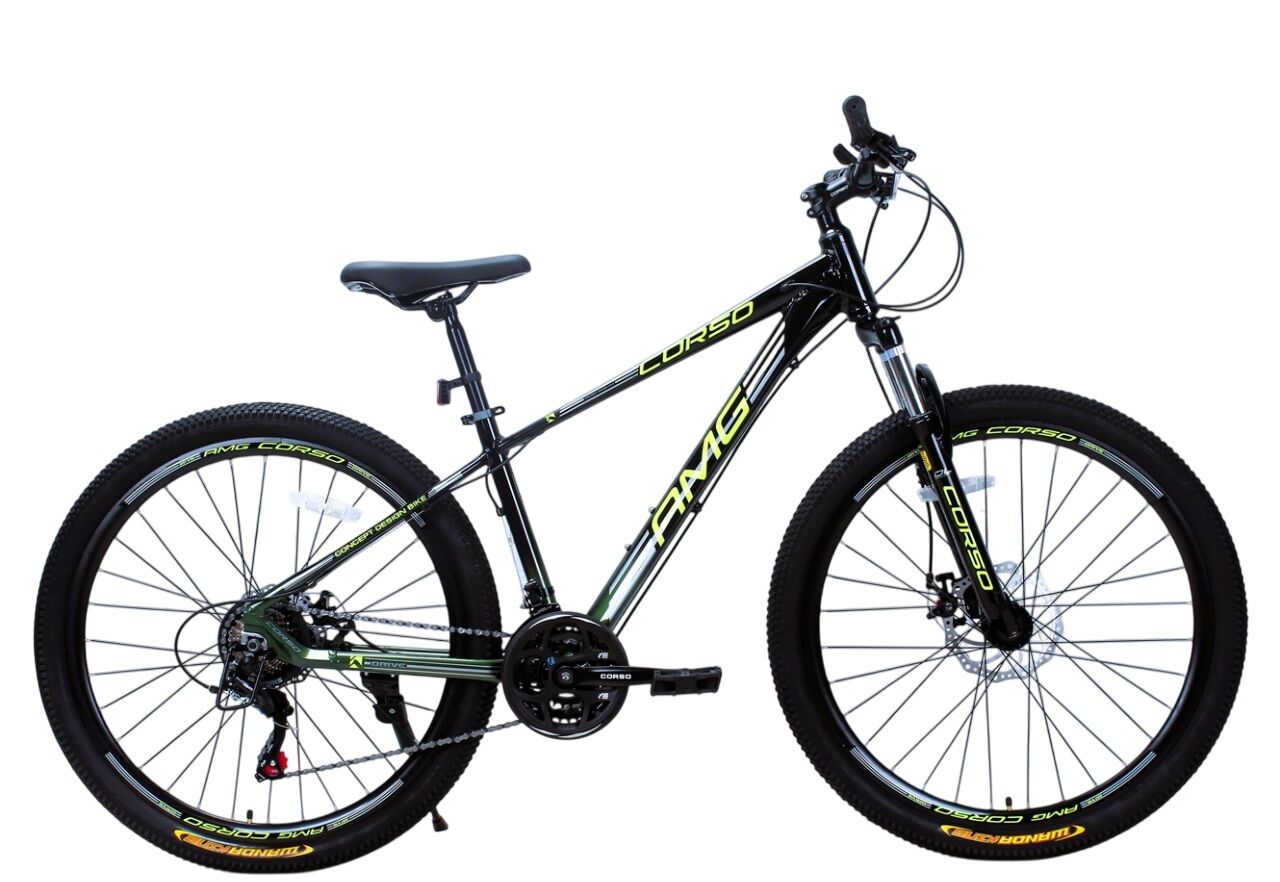 Велосипед 27.5 AL Corso «AMG» MG-27419 алюміній 15.5", (к-т SHIMANO) чорно-зелено-жовтий