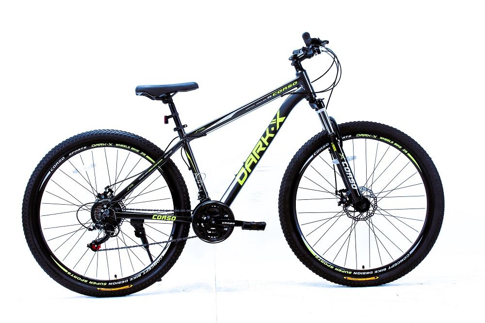 Велосипед 29 AL Corso «DARK-X» DX-29179 алюміній 17", (к-т SHIMANO) графітово-жовтий
