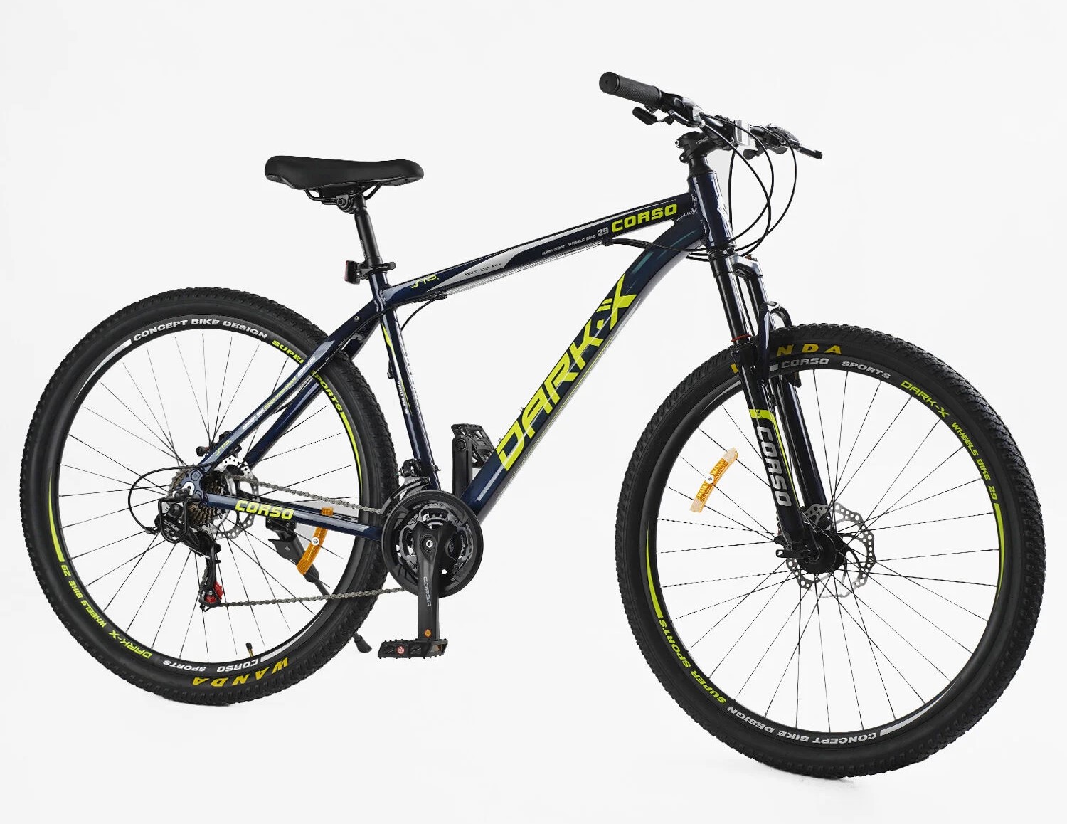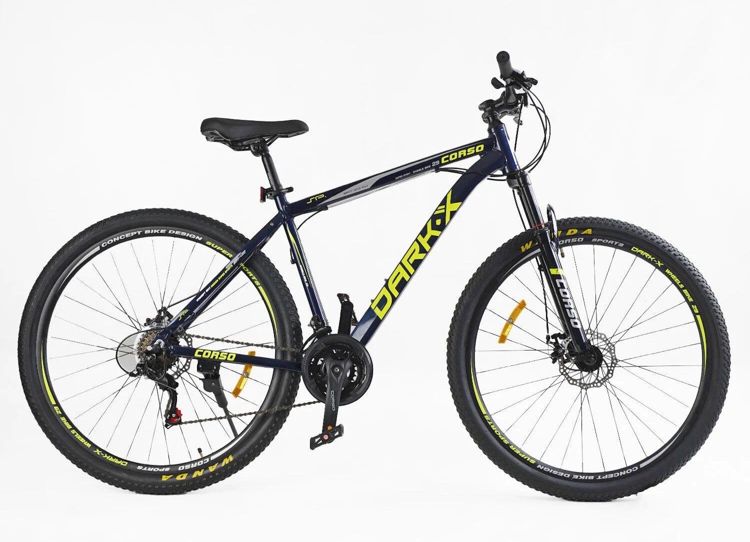 Велосипед 29 AL Corso «DARK-X» DX-29306 алюміній 19", (к-т SHIMANO) темно синьо-жовтий