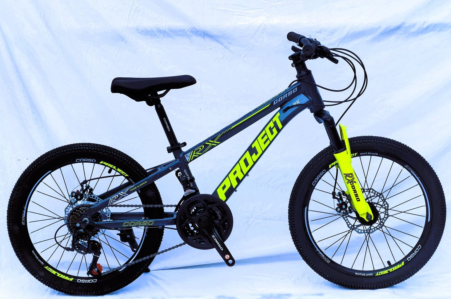 Велосипед 20 AL Corso «PROJECT» PJ-20402 алюміній 10", (к-т SunRun) графітово-жовтий
