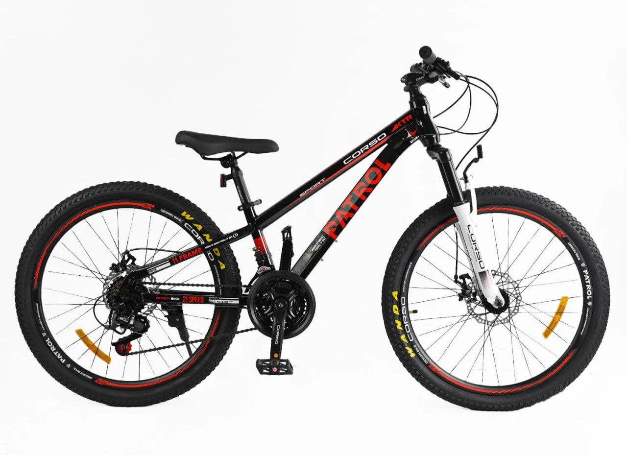 Велосипед 24 ST Corso «PATROL» PL-24616 сталь 11", (к-т SunRun) чорно-червоний