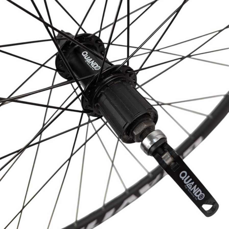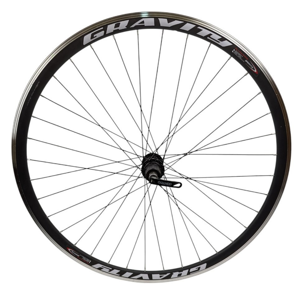 Колесо 28-29 зад, обід 2-ний чорний, втулка AL. Quando касета (8-9), ексцентрик, чорна спиця (Gravity)