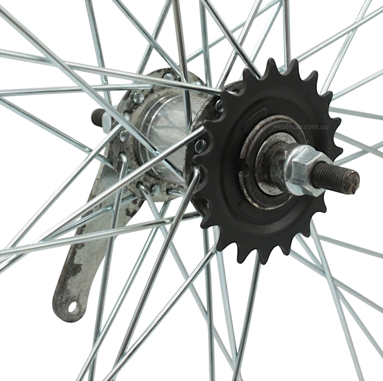Колесо 28. зад, обід нікель, спиця 3мм, втулка Falcon (Quando) + к-т (зовнішній декоративний дефект вт.)