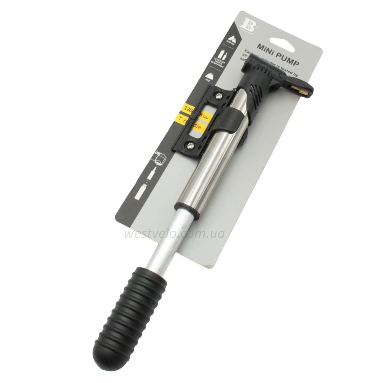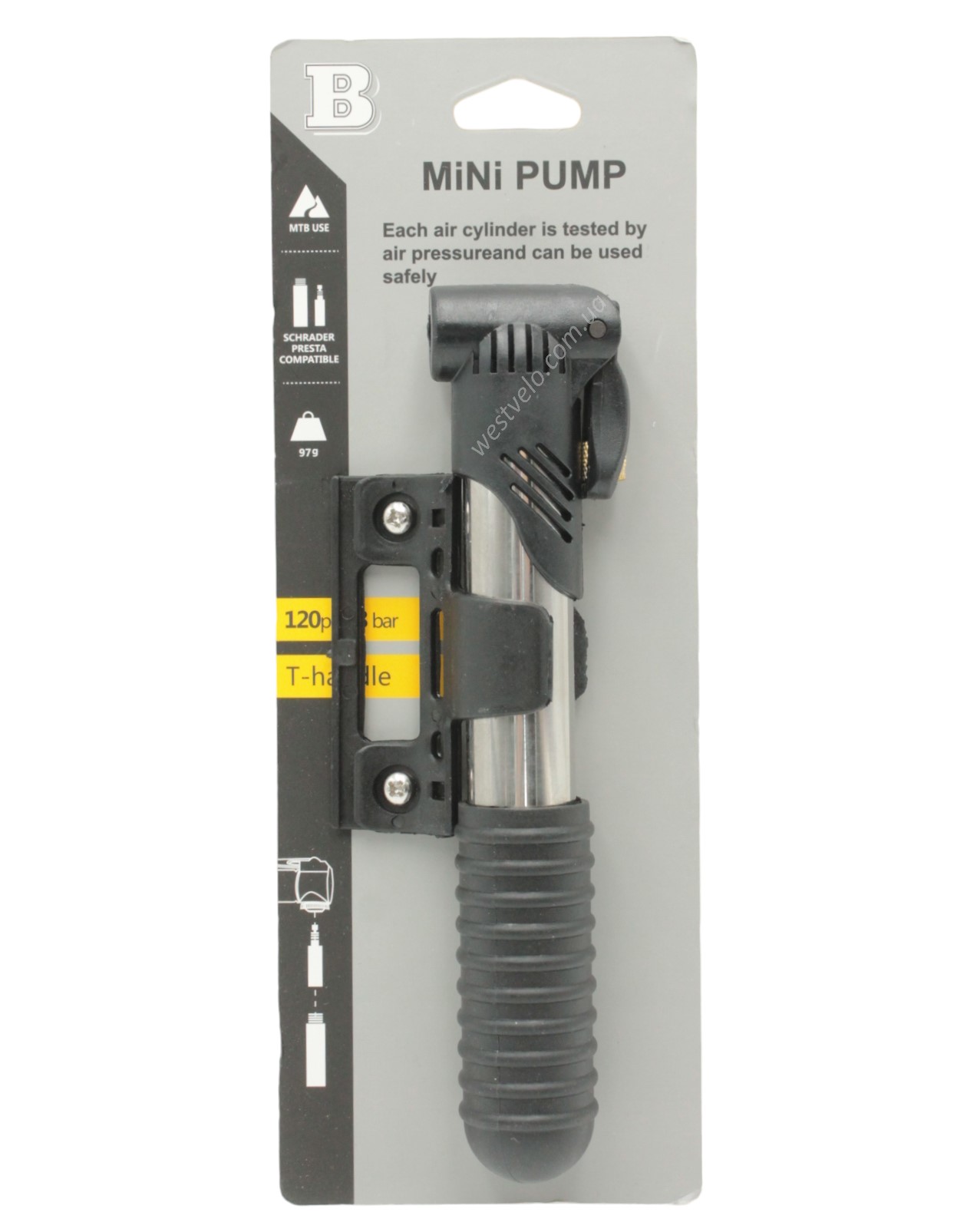 Насос вело MINI PUMP №2326 з кріпленням сірий + перехідник PRESTA