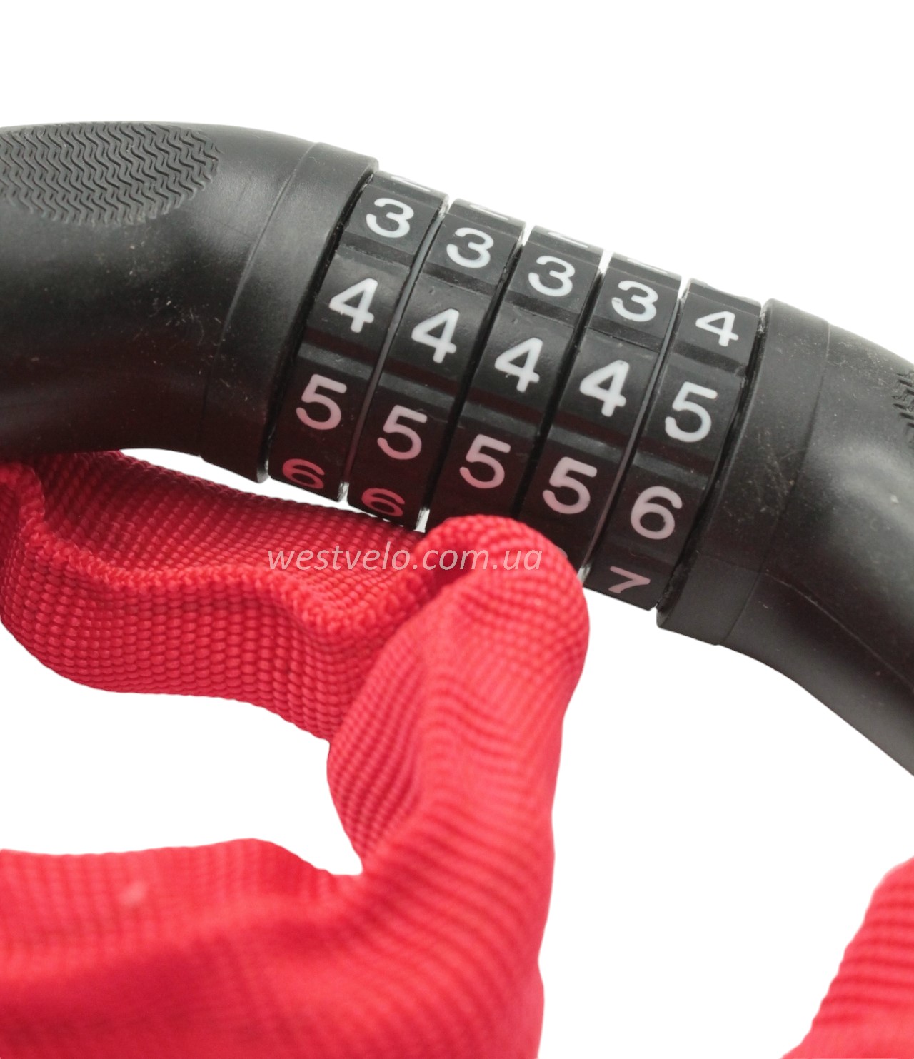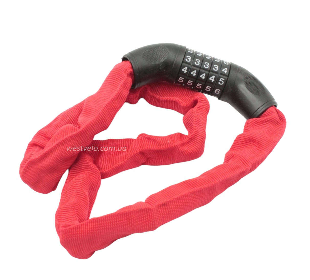 Замок на код змінний 5 цифр, ланц в чохлі 1000мм. MASJIE 162, червоний