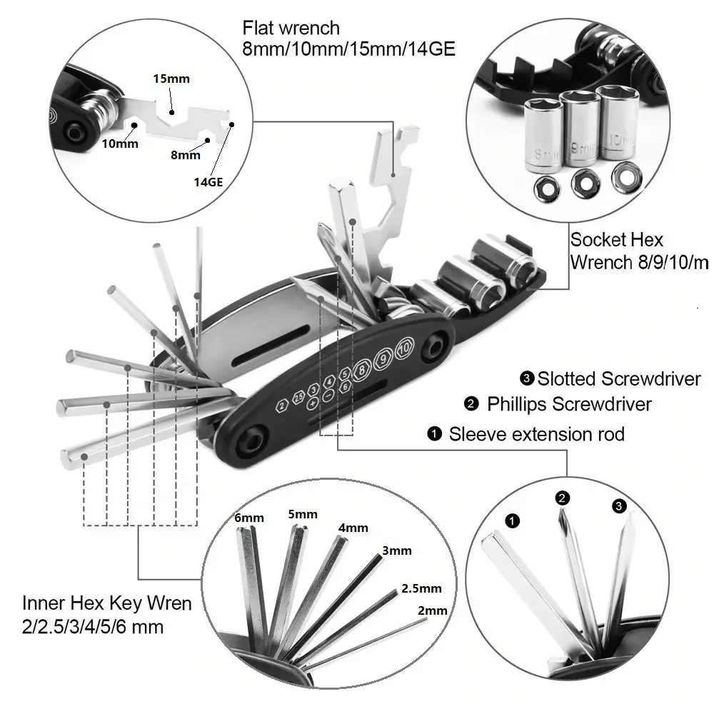 Мультитул чорний 6-гранники+головки (16 елементів)