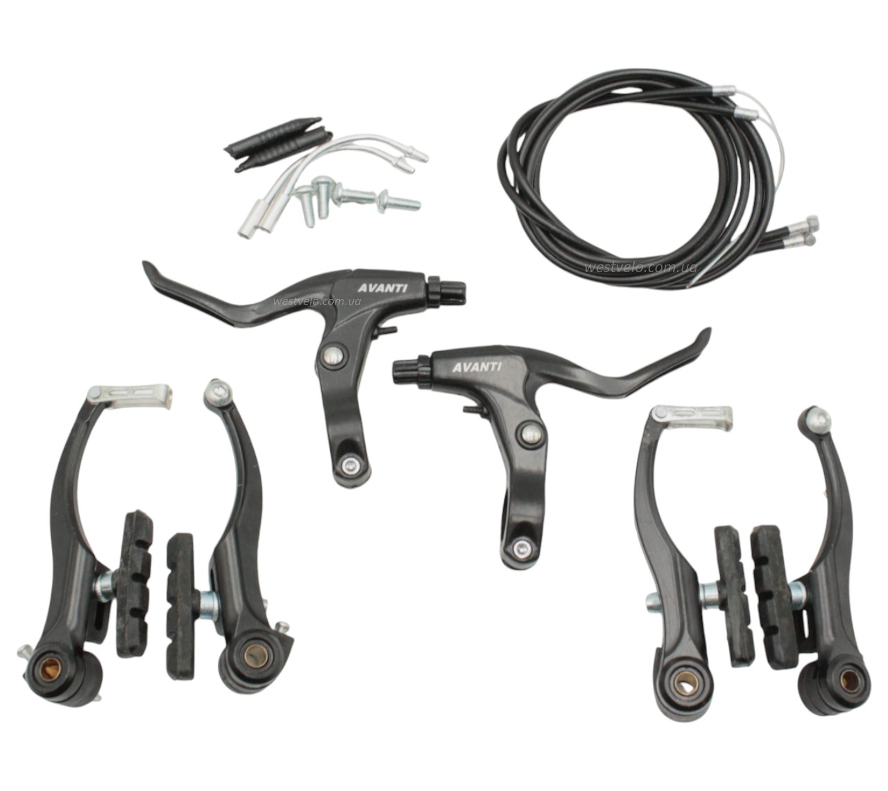Комплект гальм V-brake AVANTI алюміній чорний (перед+зад, ручки, троси)