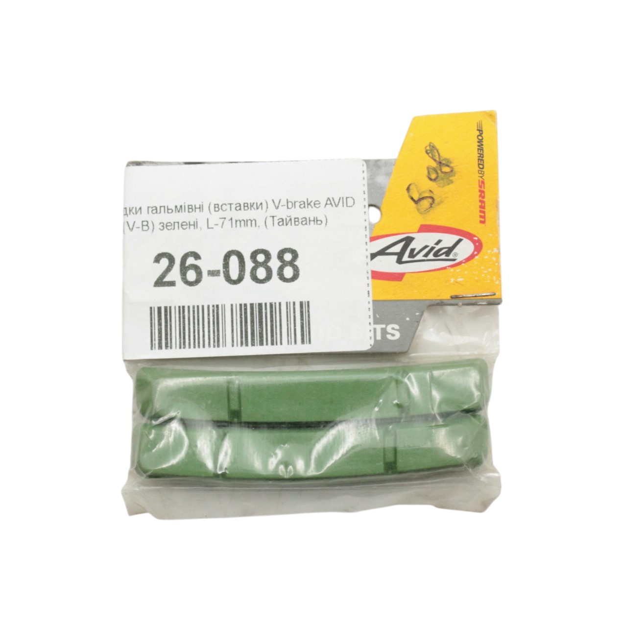 Колодки гальмівні (вставки) V-brake AVID (V-B) зелені, L-70mm, (Тайвань)