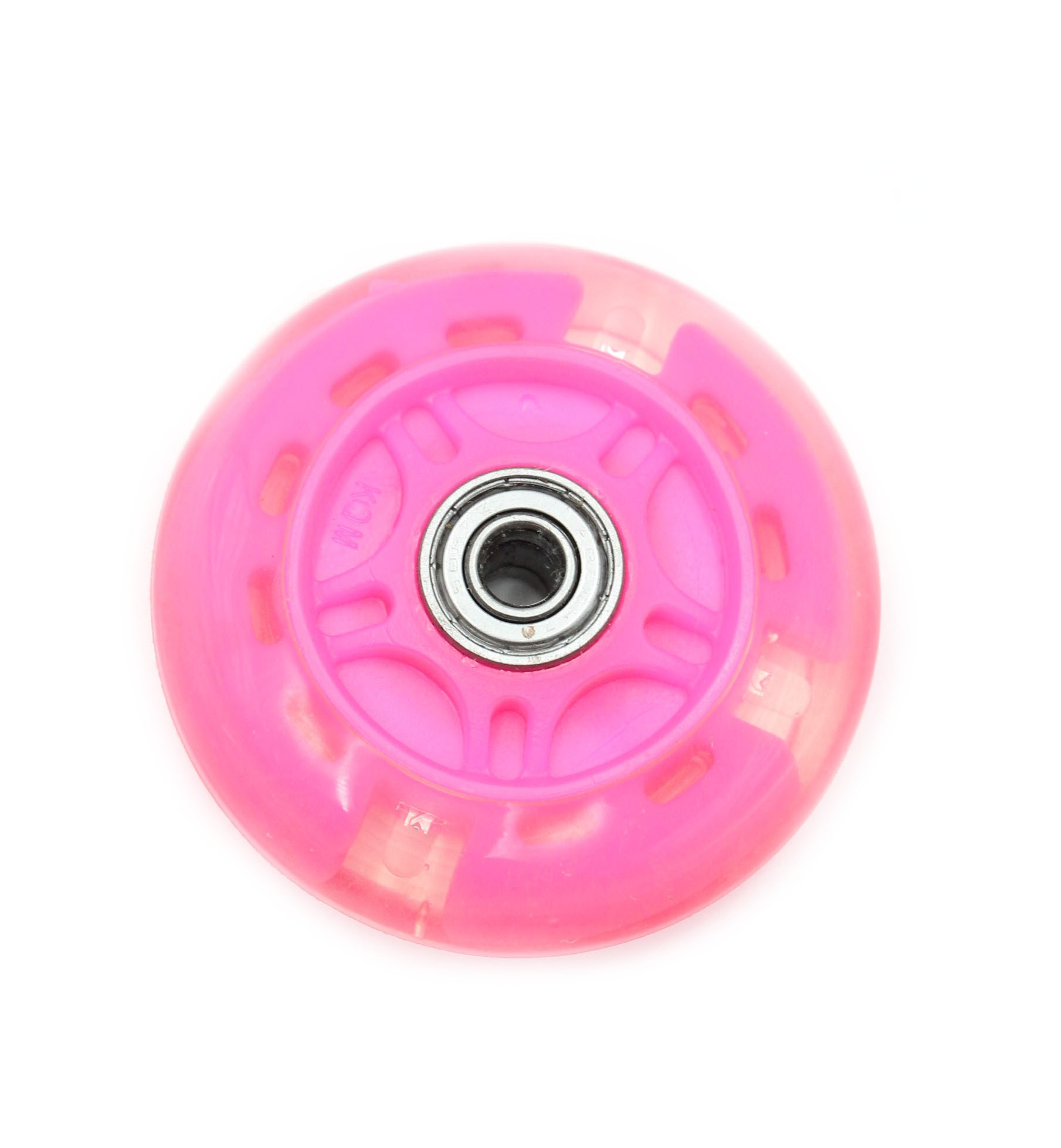 Колесо самоката дитячого пластик Ø80/22мм, діодне, рожеве