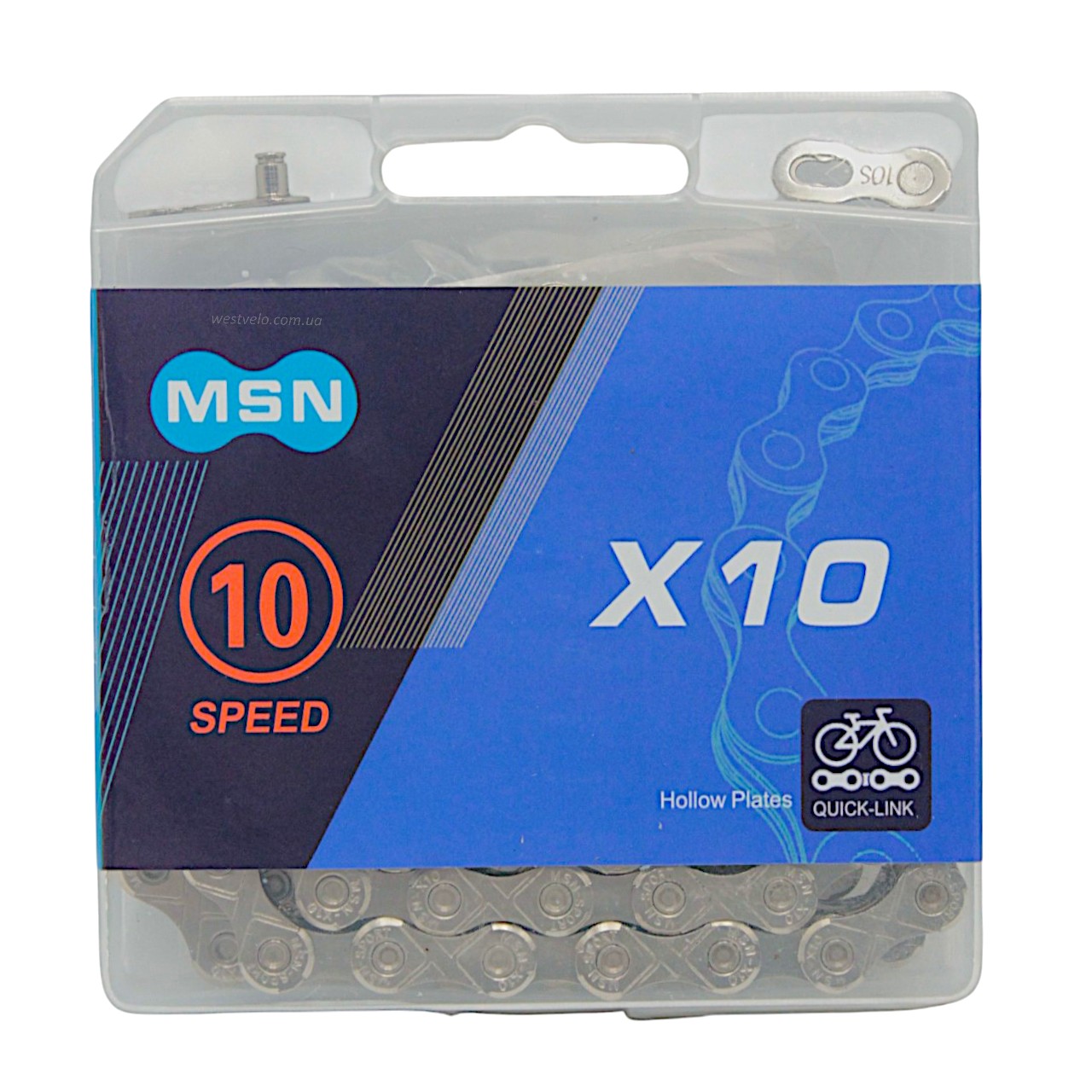 Ланцюг спорт. 10 передач MSN X10 нікель пластик 116 ланок (1/2 х 11/128) + замок