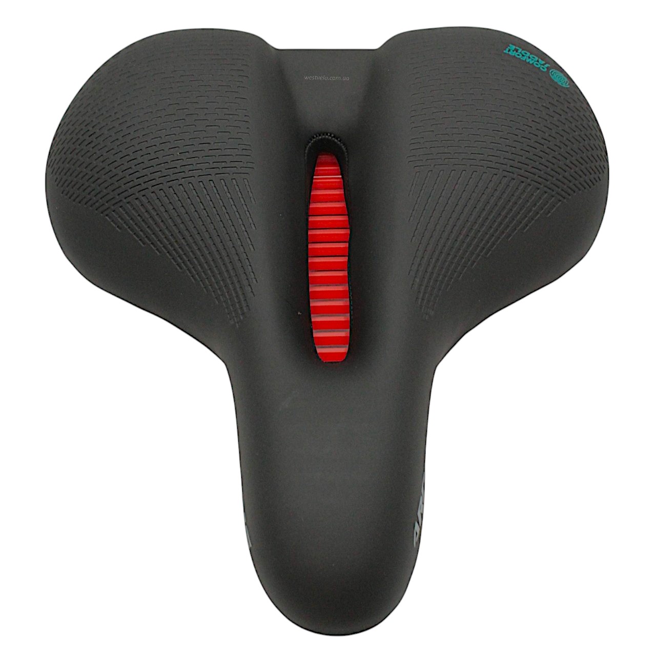 Сідло на демпферах з отвором ARDIS C007, чорне з червоним, з катафотом (255х220)