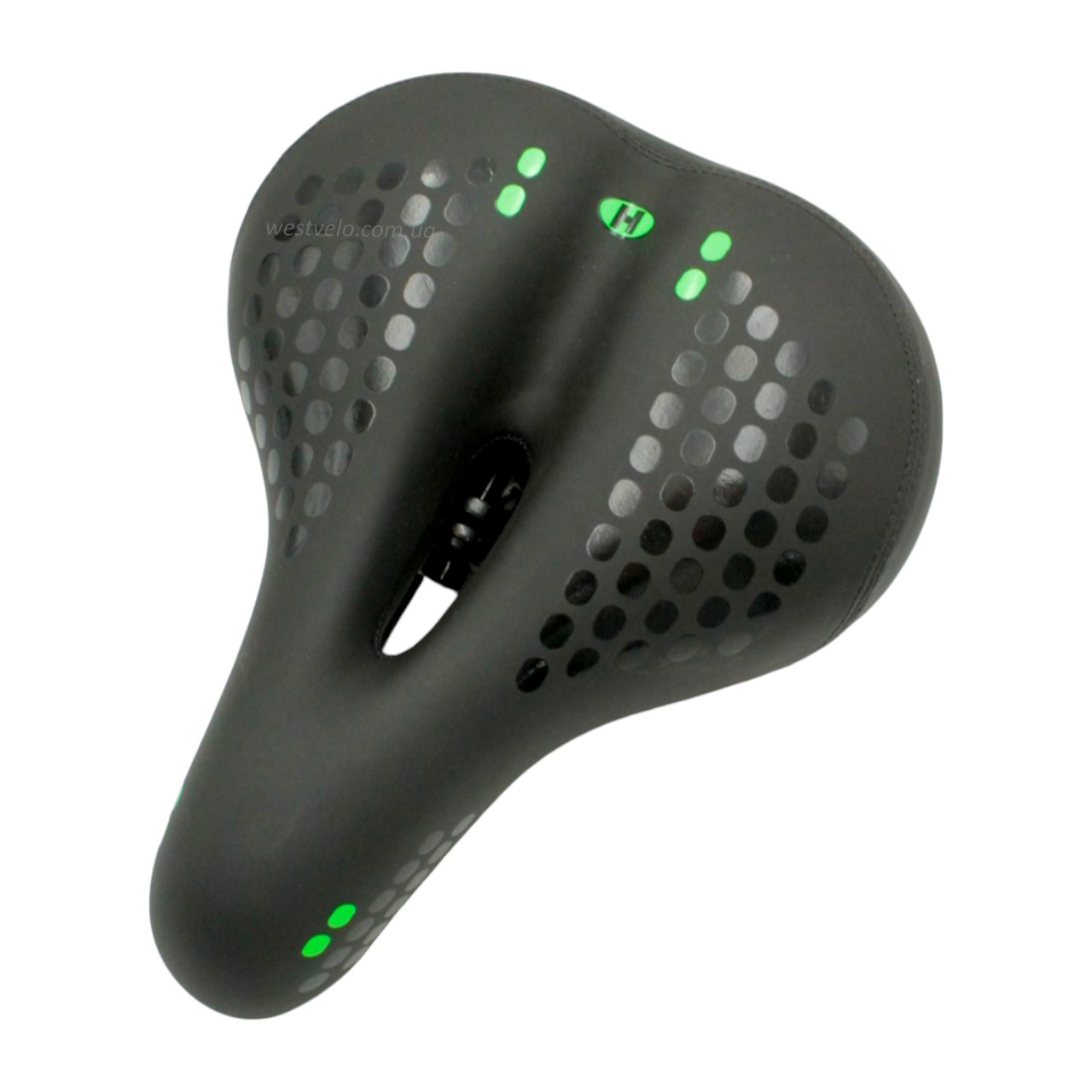 Сідло на демпферах з отвором AVANTI A-129, чорне м'яке + мигалка на батарейках