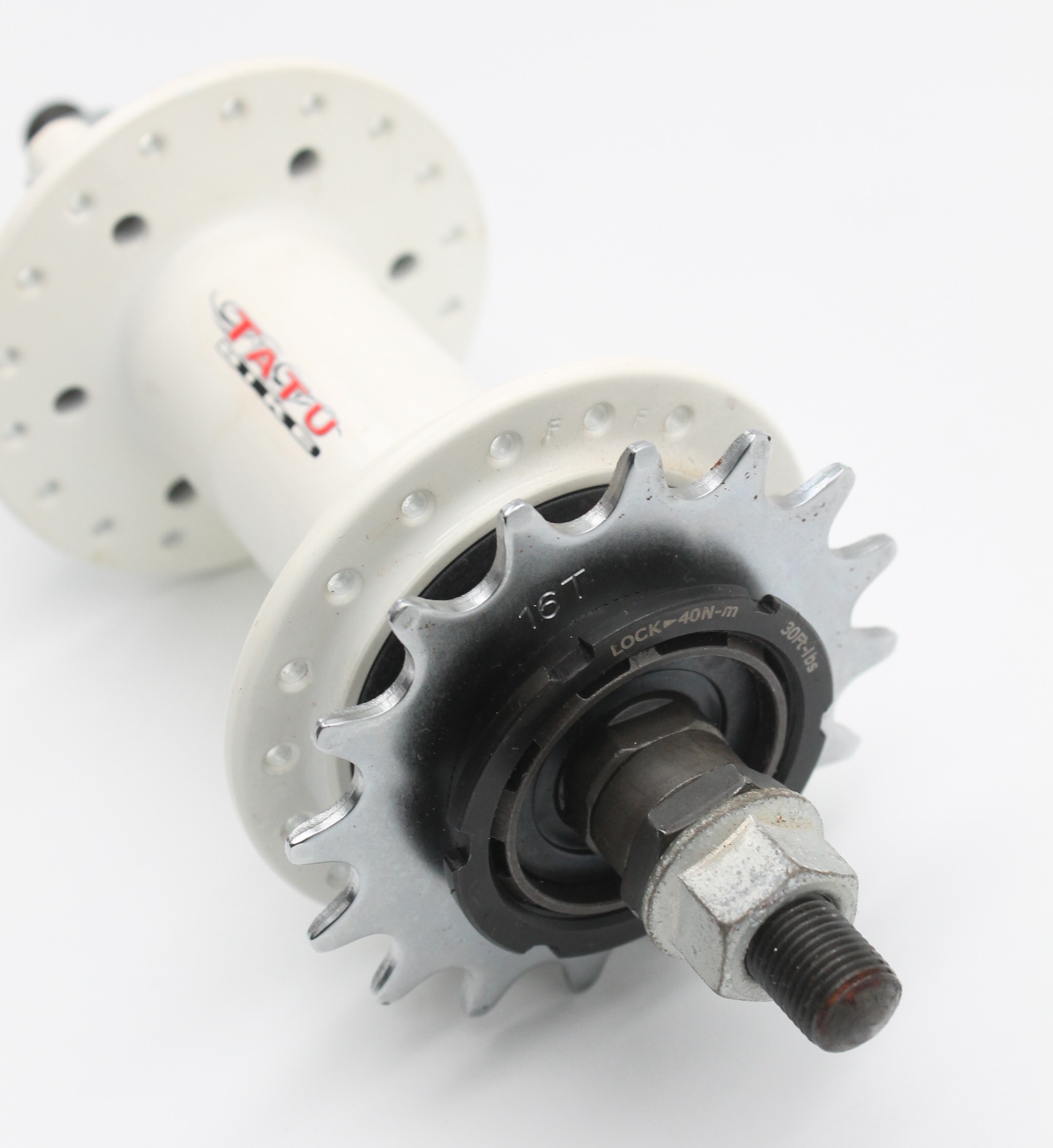 Втулка задня, (AL) TATU-BIKE, SINGLE SPEED (16T), під вісь 10мм, диск гальма 6 болтів, віночки, гайка, біла(14Gx36H)
