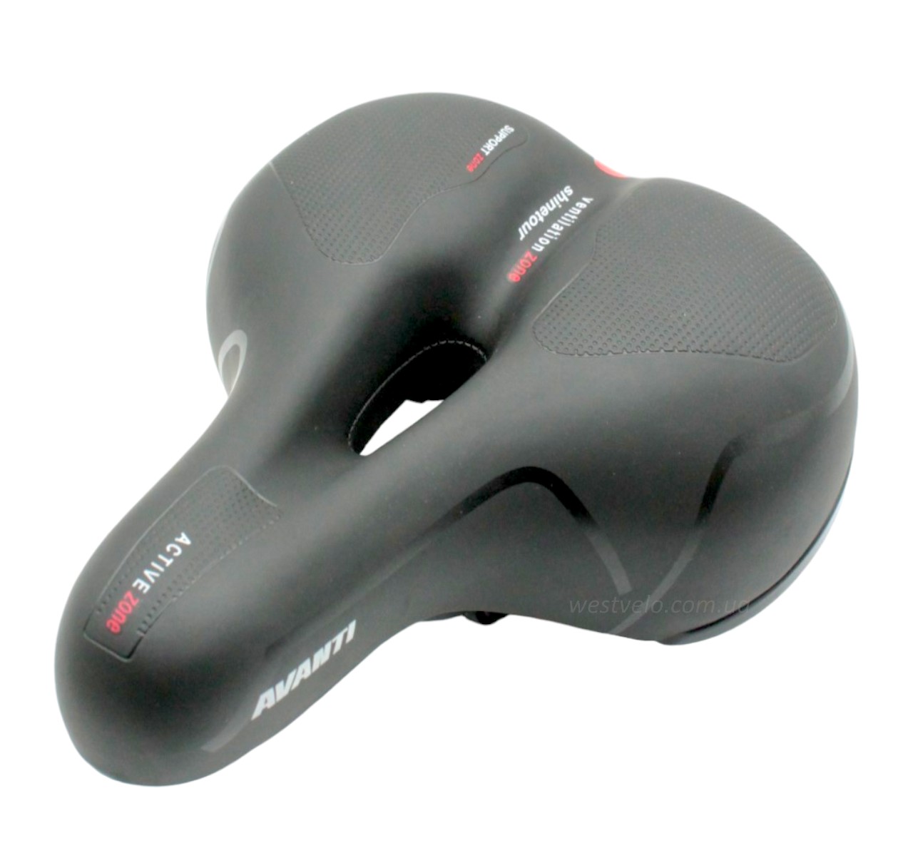 Сідло на демферах з отвором AVANTI А-38 червоне, м'яке з катафотом