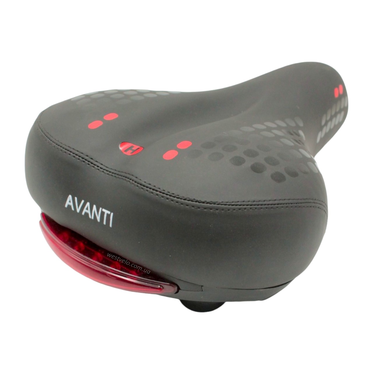 Сідло на демферах AVANTI № А-1 чорне + мигалка на батарейках (з крпаками: червоні, сині, салатові)