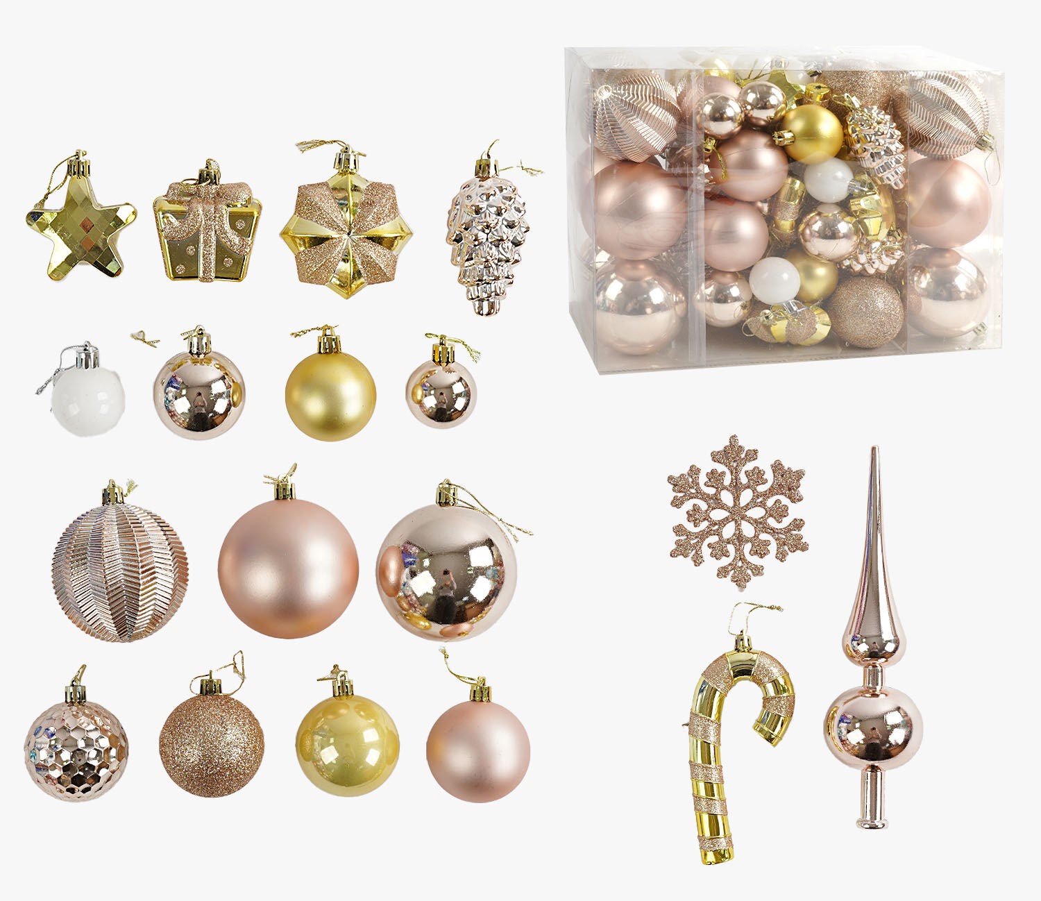 Новорічні прикраси 65 шт, кульки, зірочки, шишки, сніжинки, у слюді (C 67532)