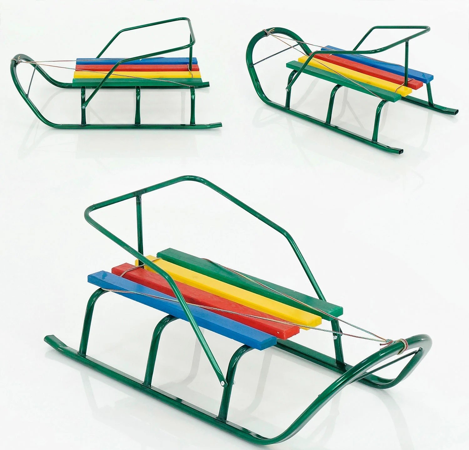 Сани без ручки, плоскі полози, зелені