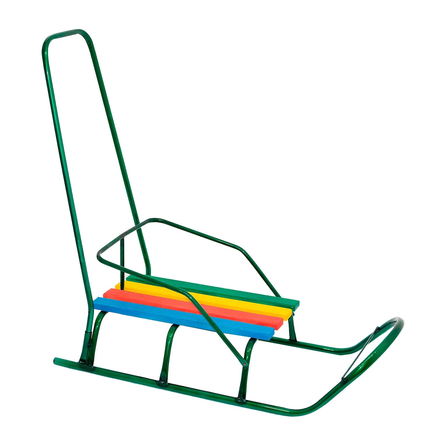 Сани з ручкою, круглі полози, зелені
