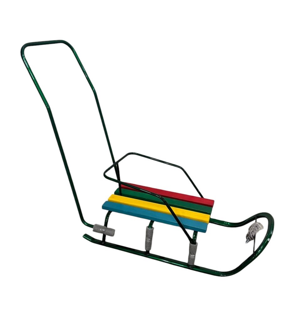 Сани з ручкою, плоскі полози, зелені