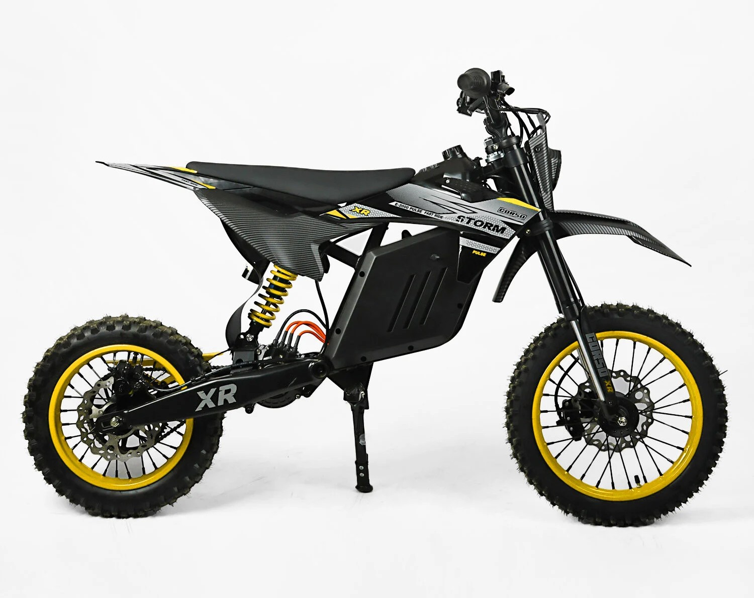 Електродіртбайк підлітковий Corso «STORM» E-2000 Pulse R-19884 двигун 2000W, акумулятор 48V 20.8Ah літієвий, чорно-жовтий, колеса 14/12"