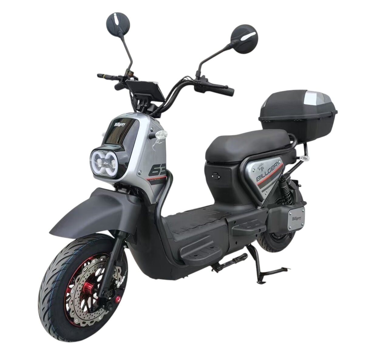 Електроскутер Corso «BILLGERY-63» B-64700, двигун 1000W, акумулятор 72V/20Ah свинцево-кислотний, чорно-срібний + 1 ящик. акум, колеса 10"