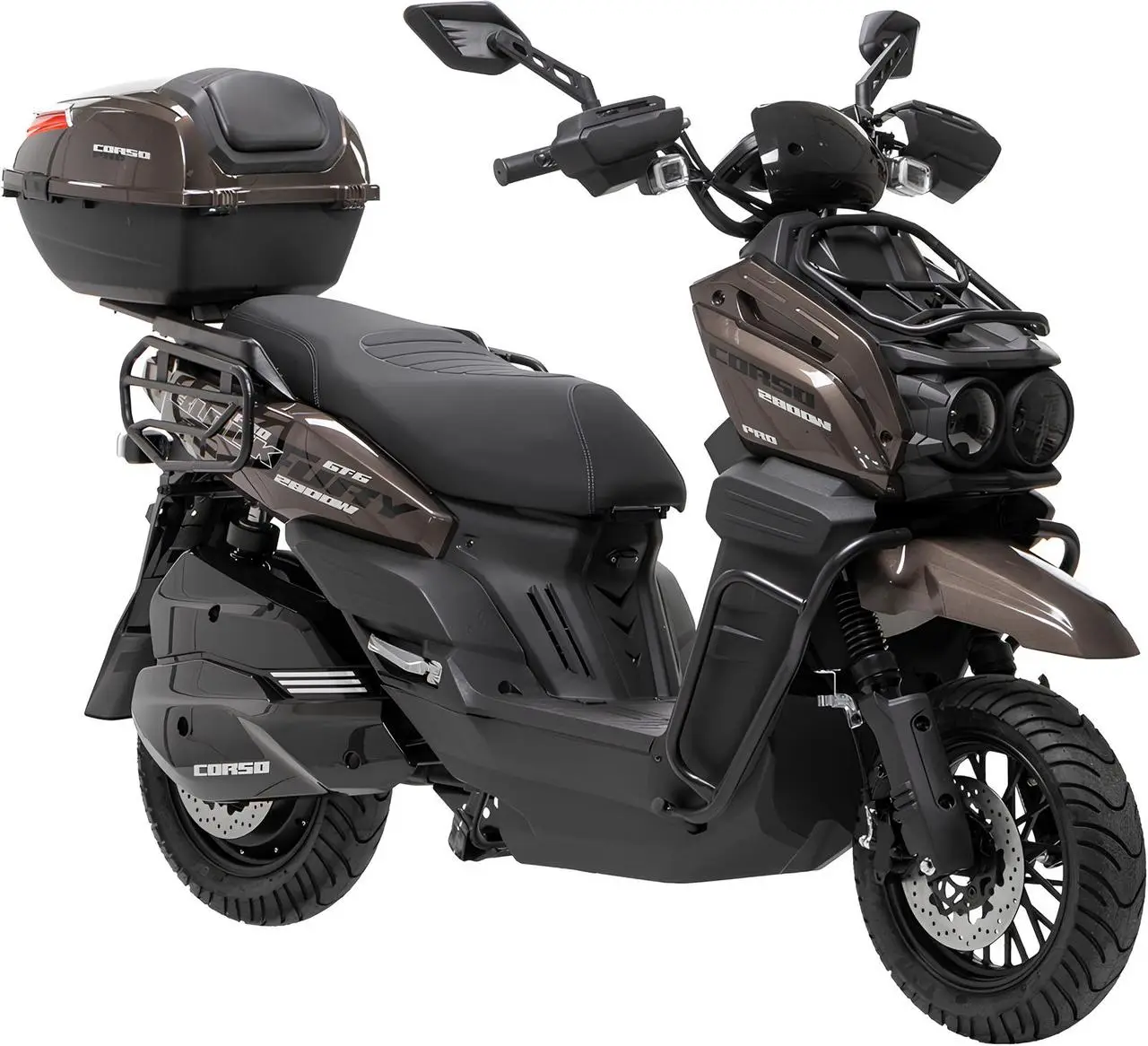 Електроскутер Corso «BLACKFURY» BF-178095, двигун 2800W, акумулятор 72V/40Ah літій-залізо-фосфатний, коричневий, колеса 12"