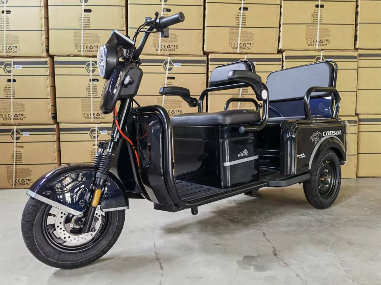 Трицикл «Consul» NL-947002, двигун 1200W, акумулятор 72V 23Ah графеновий, чорний + 1 ящик. акум, колеса 10"